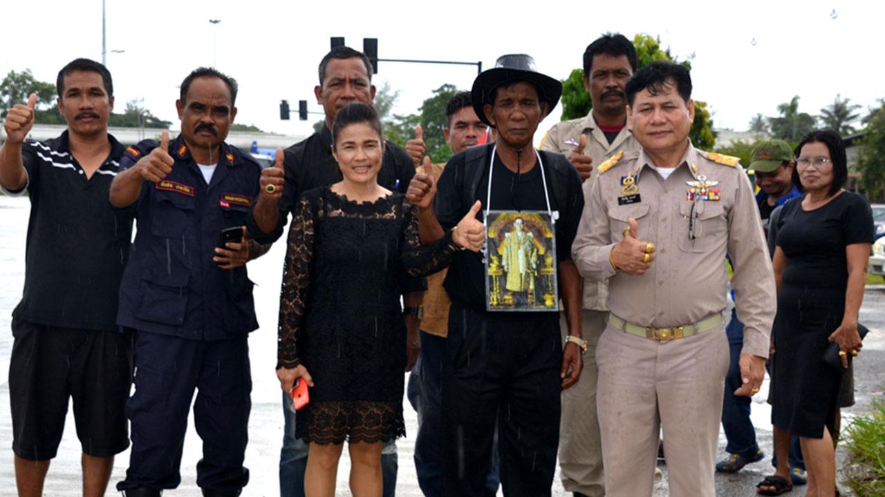 อดีตโจรเรียกค่าคุ้มครองชื่อดังภาคใต้ "ไข่หมูก" เจิม เส้งเอียด ออกเดินเท้าจากบ้านเกิดใน อ.ป่าพะยอม จ.พัทลุง ไปสักการะพระบรมศพ ที่พระบรมมหาราชวัง ด้วยความสำนึกในพระมหากรุณาธิคุณ ที่ในหลวงรัชกาลที่ 9 พระราชทานอภัยโทษหลายครั้ง..
