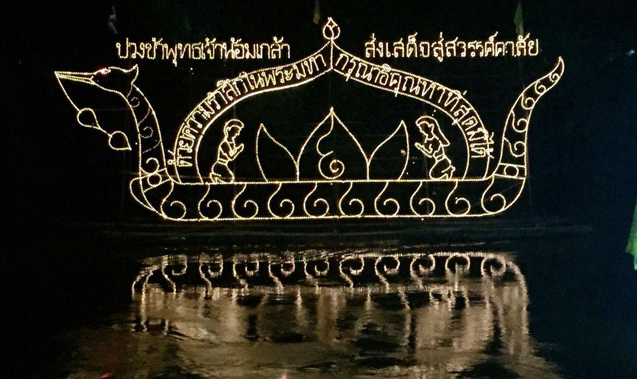 ส่วนที่จังหวัดอุบลราชธานี ชาวชุมชนตลาดท่าวังหิน พร้อมใจกันทำเรือไฟฟ้าแสดงความอาลัยแด่พระบาทสมเด็จพระพระปรมินทรมหาภูมิพลอดุลยเดช โดยเรือไฟฟ้ามีข้อความ "ปวงข้าพระพุทธเจ้าน้อมเกล้า ส่งเสด็จสู่สวรรคาลัย ด้วยความสำนึกในพระมหากรุณาธิคุณอย่างหาที่สุดมิได้" ลอยอยู่กลางลำน้ำมูลน้อย
