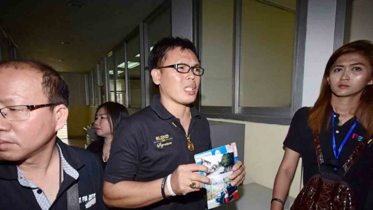 นายอ๊อด นุ่มสำลี เจ้าของร้านของชำ ในมือถือภาพถ่ายรถยนต์ที่คนร้ายขโมยไปขณะจอดอยู่ข้างบ้าน ในหมู่บ้านเคหะธานี ซอยนวมินทร์ 74 แยก 3 และทรัพย์สินอีกหลายอย่างที่แก๊งตีนแมวย่องยกเค้ากว่า 6 ครั้ง สูญเงินรวมกว่าล้านบาท เข้าพบตำรวจ สน.โคกคราม ให้เร่งติดตามคนร้าย แต่กลับถูกรีดเงินค่าทำงาน.