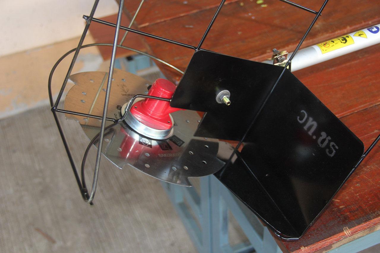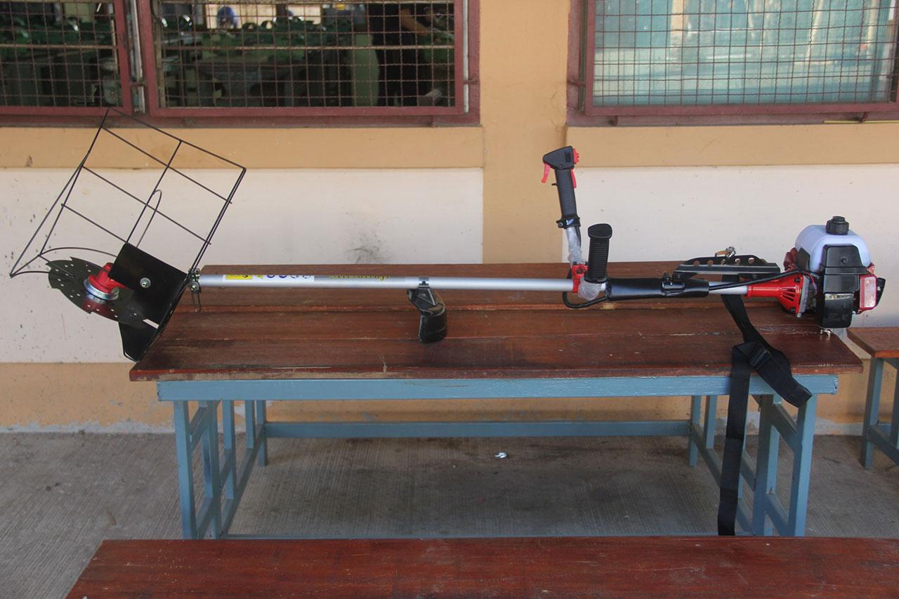 ทั้งนี้จึงได้ปรึกษาคณะอาจารย์ร่วมกันคิดพัฒนาเครื่องมือการเกี่ยวข้าวขนาดเล็กโดยใช้งานร่วมกับเครื่องตัดหญ้า ซึ่งส่วนใหญ่เกษตรกรมีอยู่แล้ว ทางวิทยาลัยเทคนิคเชียงรายจึงประดิษฐ์ออกมาและทดลองเก็บข้าวนาปรัง และกำลังพัฒนาให้ใช้งานได้กับแปลงข้าวทุกประเภท ส่วนค่าใช้ถูกมากใช้เชื้อเพลิงเบนซิน 91 จำนวน 2 ลิตรต่อวันต่อคน จะสามารถเกี่ยวข้าวได้ 2-4 ไร่ ซึ่งจะชดเชยการใช้แรงคน 4-8 คนต่อวัน และราคาวัสดุผลิตก็ไม่แพง ตามสโลแกนของวิทยาลัยเทคนิค "ใช้งานได้ ต้นทุนต่ำ"