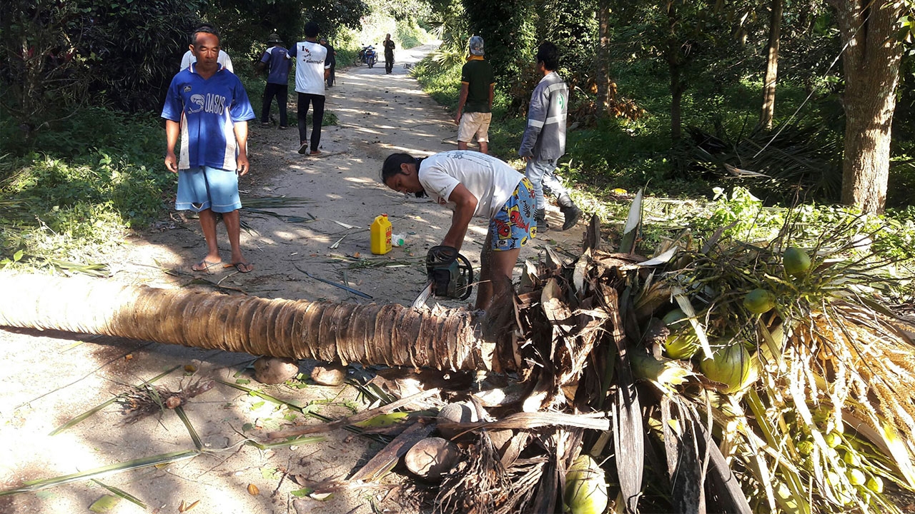 ด้าน นายสมบัติ ดวงเจริญ อายุ 51 ปี ชาว ต.ทับไทร เจ้าของสวนทุเรียนและกล้วยหอม หนึ่งในผู้ได้รับความเสียหาย เล่าว่าในห้วงระยะต่อเนื่องกันมาประมาณ 1 เดือน มีช้างป่าพลายสีดออายุประมาณ 15 ปี ตัวสูงใหญ่แตกโขลงลงจากเทือกเขาสอยดาวใต้ เข้ามาหากินในพื้นที่สร้างความเดือดร้อนให้ชาวบ้านหลายรายอย่างต่อเนื่อง เคยแจ้งทางเจ้าหน้าที่ป่าไม้ แต่ก็ช่วยอะไรไม่ได้มาก มีแต่เพียงนำป้ายมาปักเตือน กระทั่งเมื่อคืนราว 3 ทุ่มเศษ จู่ๆ กระแสไฟฟ้าในบ้านดับลงโดยไม่ทราบสาเหตุ กระทั่งรุ่งเช้าชาวบ้านพากันออกสำรวจถึงรู้ว่า เสาไฟถูกช้างป่าบุกเข้าทำลายเสียหาย และจะได้แจ้งหน่วยงานที่เกี่ยวข้องดำเนินการแก้ไขช่วยเหลือต่อไป