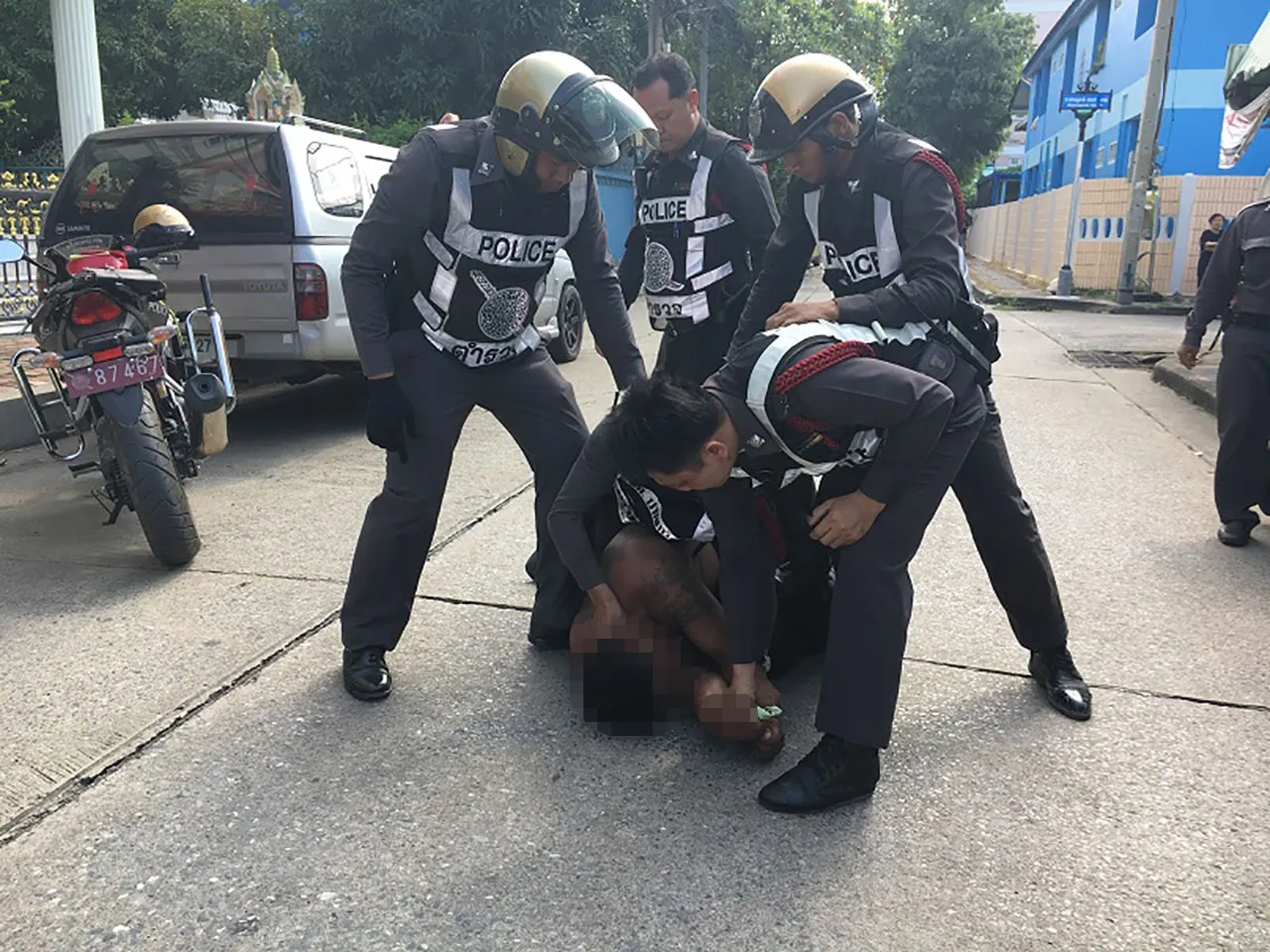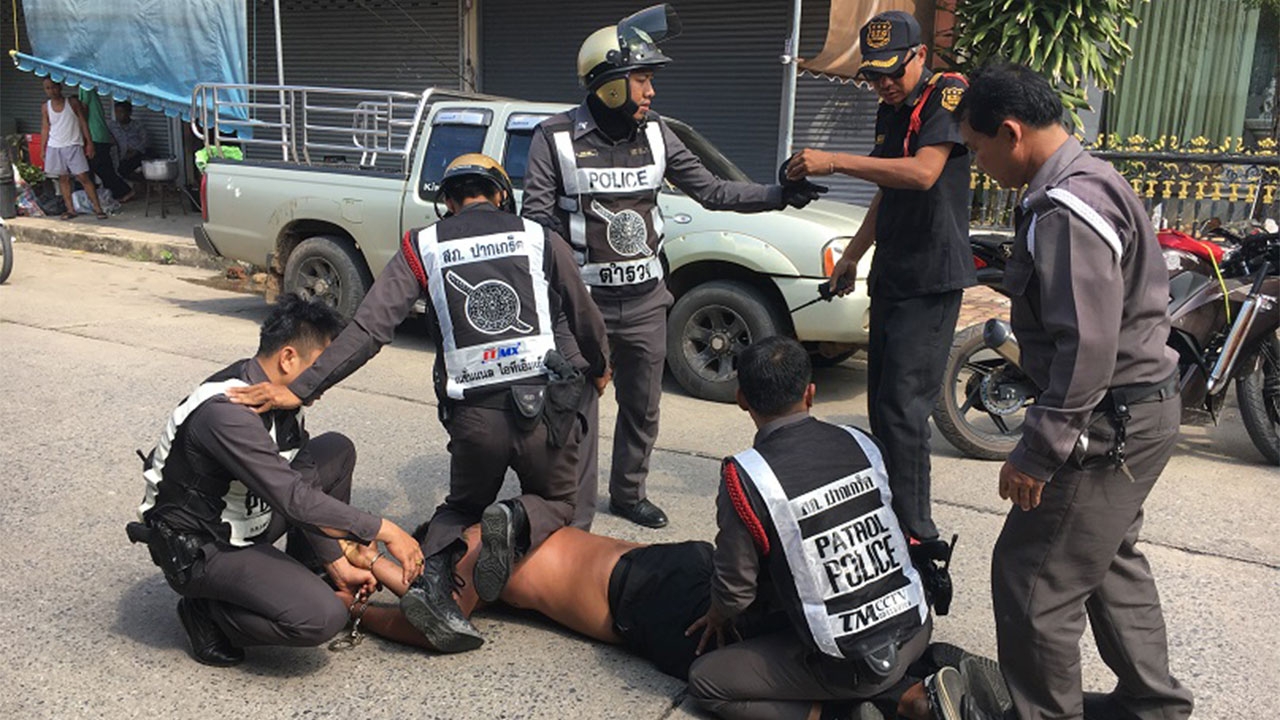 เมื่อเวลา 13.30 น. วันที่ 16 พ.ย. 59 ร.ต.อ.สมโภช สืบวงศกร รอง สว.สส.สภ.ปากเกร็ด จ.นนทบุรี รับแจ้งเหตุมีชายคลุ้มคลั่งอาละวาดพังทรัพย์สินบ้านเลขที่ 53/36 หมู่ 4 หมู่บ้านกฤษดานคร ซอยอินทนิล 1 ถ.แจ้งวัฒนะ ต.บางตลาด จึงไปสอบสวนพร้อมด้วย พ.ต.ท.ยศวิน เอี่ยมพุ่ม รอง ผกก.สส.สภ.ปากเกร็ด ในที่เกิดเหตุพบ นายจักรกฤษณ อัศวเรขา อายุ 66 ปี เจ้าของบ้าน รอให้ปากคำกับเจ้าหน้าที่ พร้อมกับชี้ให้ดูความเสียหายของประตูหน้าบ้านที่เป็นรูโหว่ มีไม้หล่นกระจัดกระจายเกลื่อนพื้น พร้อมให้การว่ามีชายรูปร่างสูงใหญ่ลักษณะคลุ้มคลั่งมากระโดดถีบประตูจนได้รับความเสียหาย ก่อนจะเดินหนีเข้าไปในหมู่บ้าน หลังจากทราบเรื่องได้ประสาน พ.ต.ต.ชาญวิทย์ รวมสิน สวป.สภ.ปากเกร็ด ให้นำกำลังเจ้าหน้าที่ออกติดตาม