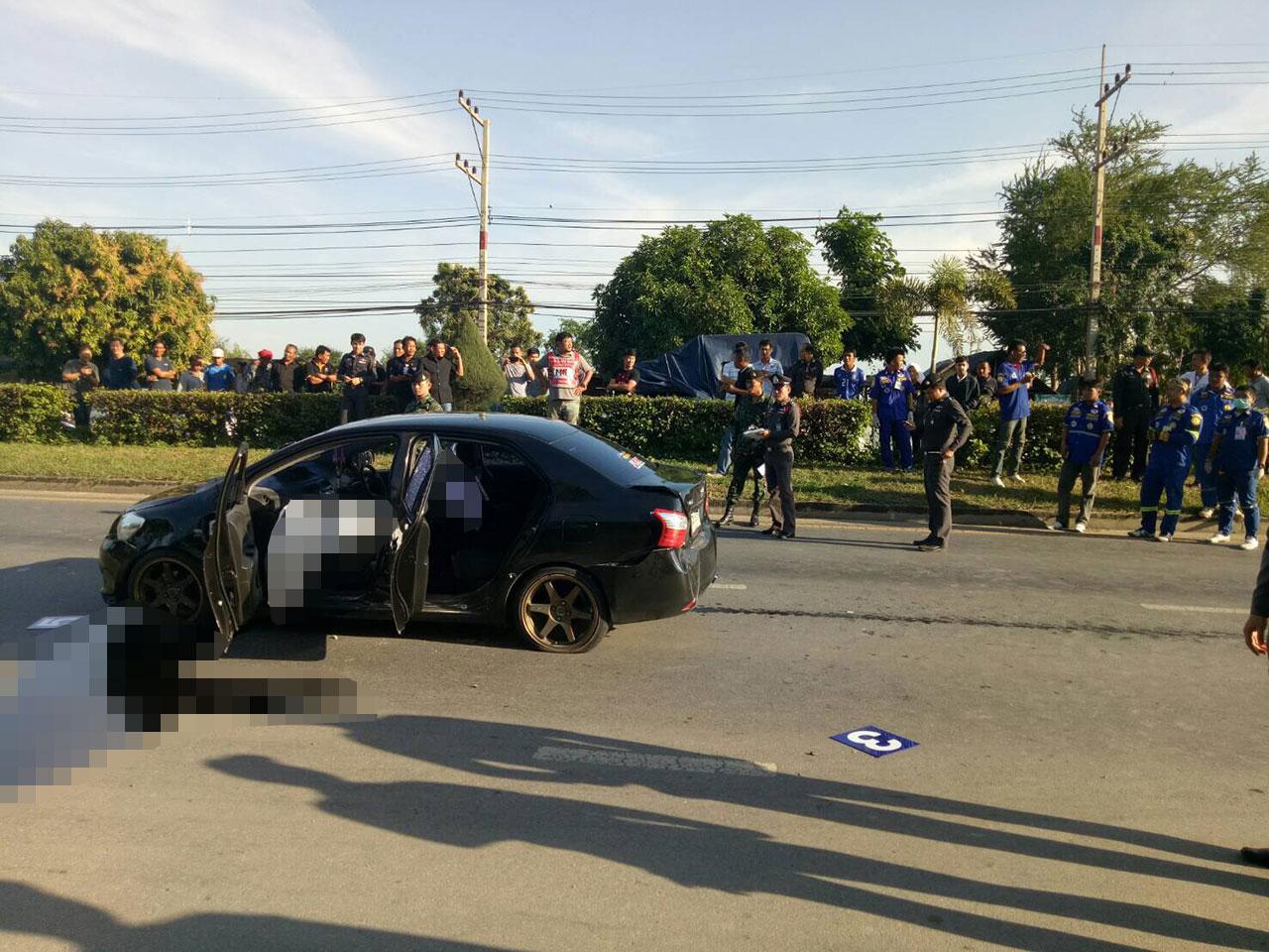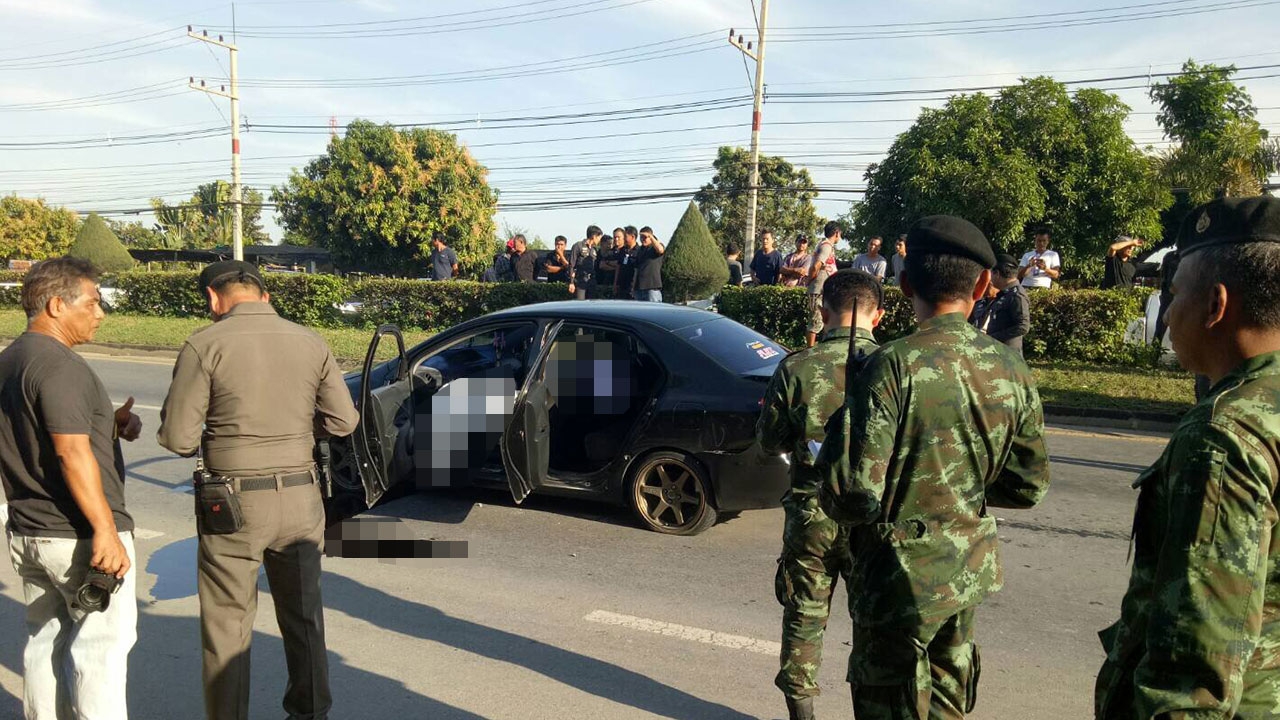 จนท.ตร.-ทหาร ไล่ล่า 2 หนุ่มควบเก๋งวีออส แหกด่านตำรวจ สภ.เมืองกาญจนบุรี หนีไกลระยะทาง 50 กม. ชักปืนยิงใส่ จนท. สุดท้ายจนมุมถูกวิสามัญดับคู่ ในพื้นที่ สภ.พนมทวน ค้นในรถพบแค่ปืนสั้น 3 กระบอก นำรถชำแหละหาสิ่งผิดกฎหมาย