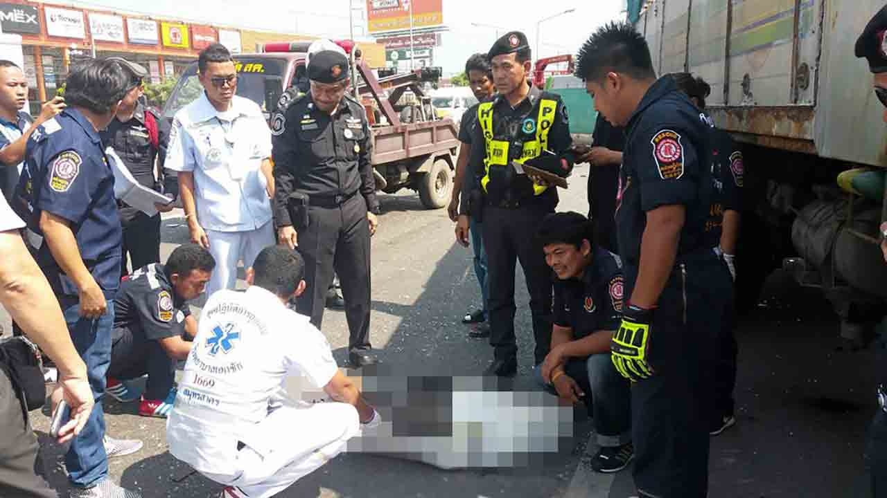 ตำรวจทางหลวงชะตาขาดถูกรถบรรทุกชนทับร่างดับอนาถขณะปฏิบัติหน้าที่รายนี้ เปิดเผยขึ้นเมื่อเวลา 10.30 น. วันที่ 16 พ.ย. ร.ต.อ.อะลาม ครุฑจู รอง สว. (สอบสวน) สภ.บางโทรัด อ.เมืองสมุทรสาคร รับแจ้งเหตุอุบัติเหตุรถชนกันมีผู้เสียชีวิต และบาดเจ็บหลายคน บนถนนพระราม 2 ขาออก กทม. ตรงข้ามห้างดูโฮม หมู่ 2 ต.บ้านบ่อ จึงนำกำลัง ตำรวจ พร้อมเจ้าหน้าที่มูลนิธิการกุศลสมุทรสาคร เดินทางไปตรวจสอบที่เกิดเหตุริมถนนพบรถชนกัน 3 คันรวด ประกอบด้วยรถบรรทุก 10 ล้อ ทะเบียน 81-0146 เพชรบุรี ถูกชนท้ายพังยับ ตามด้วยรถ 6 ล้อ ทะเบียน 10-0701 สมุทรสาคร ดัดแปลงเป็นรถสองแถวโดยสารประจำทางสายสมุทรสาคร-บางโทรัด มีรอยถูกชนด้านหน้ารถและท้ายรถยุบพังเสียหาย และรถพ่วง 18 ล้อ ทะเบียน 60-1608 กรุงเทพมหานคร ลูกพ่วงทะเบียน 75-9980 กรุงเทพ-มหานคร ด้านหน้ารถติดสติกเกอร์บริษัทวรรณวิสาข์ เซอร์วิส จำกัด มีรอยชนพังเสียหาย