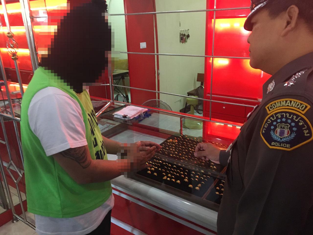 ในชั้นจับกุม ผู้ต้องหาสารภาพว่าที่ต้องเป็นโจรเพราะทำงานเป็นพนักงานส่งเอกสารให้สำนักงานทนายความแห่งหนึ่งแต่เงินเดือนไม่พอใช้ เนื่องจากมีหนี้สินทับถมเป็นจำนวนมาก จึงขี่รถจักรยานยนต์มาดูลาดเลา เห็นเจ้าของร้านเป็นผู้หญิงอยู่คนเดียว และสร้างกรงเหล็กขังตัวเองไว้ จึงตัดสินใจก่อเหตุ เพราะเชื่อว่าเจ้าของร้านคงไล่ตามไม่ทัน จากนั้นได้นำแหวนทองไปขายที่ร้านทองแห่งหนึ่งใน อ.สารภี จ.เชียงใหม่ พร้อมกับพาตำรวจไปยึดของกลางคืนมา ก่อนนำตัวไปทำแผนประกอบคำรับสารภาพ และส่งมอบให้ พ.ต.ท.ถาวร นันติเสน รอง ผกก.สส.(หน.งานสอบสวน) ดำเนินคดีต่อไป.