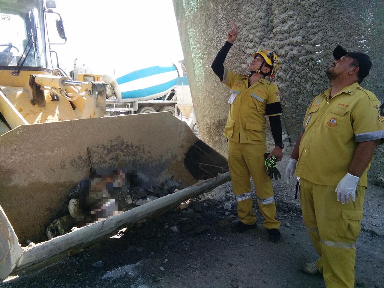 ที่เกิดเหตุพบผู้เสียชีวิตเป็นชาย 2 ราย ติดอยู่ในเครื่องผสมปูนสูงจากพื้นราว 20 เมตร และมีชิ้นส่วนของศพหล่นลงมากองอยู่ในบุ้งกี๋ของรถแบ็กโฮ ทราบชื่อผู้ตาย นายไกรสร โตประเสริฐ อายุ 24 ปี ชาวนครสวรรค์ และ นายนิกุล ยิ้มชัยภูมิ อายุ 28 ปี ชาวชัยภูมิ เจ้าหน้าที่มูลนิธิเข้านำร่างผู้เสียชีวิตออกจากเครื่องโม่ ใช้เวลาประมาณ 20 นาที จากนั้นตรวจสอบสภาพศพ พบว่า นายไกรสร แขนและขาด้านขวาฉีกขาด ส่วน นายนิกุล กะโหลกศีรษะแตก คอขาด และขาทั้ง 2 ข้างกระดูกแหลกเหลว