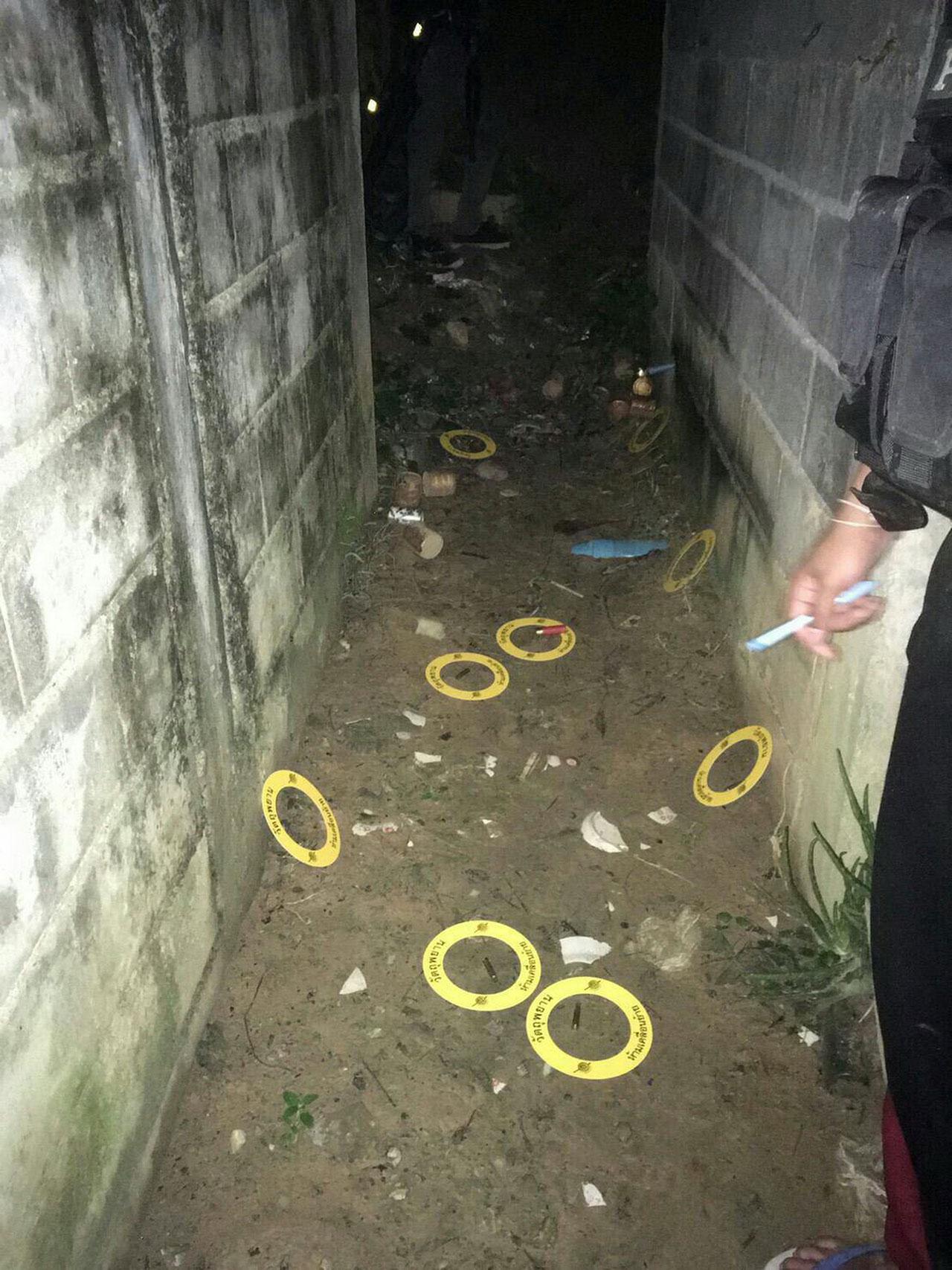 ที่เกิดเหตุบริเวณข้างบ้านเลขที่ 34/1 หมู่ 9 ต.อัยเยอร์เวง เจ้าหน้าที่พบศพ นายสูเด็ง สาแม็ง อายุ 57 ปี อาชีพทำสวน สวมเสื้อเชิ้ตแขนสั้นลายสก็อตสีน้ำเงิน-ฟ้า กางเกงยีนส์ขาสั้น นอนคว่ำหน้าเสียชีวิตอยู่ข้างบ้าน มีบาดแผลถูกยิงด้วยอาวุธปืนที่คอ หลัง และตามลำตัวหลายแห่ง