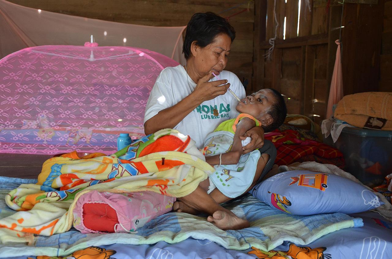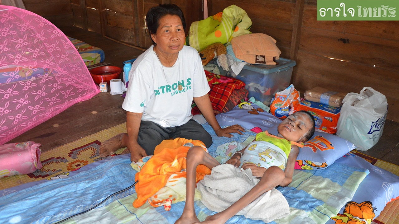 ส่วนลูกสาวของตนเองซึ่งเป็นแม่ของหลานคนนี้ได้แยกทางกับสามีไปทำงานอยู่ต่างจังหวัด นานๆ จะส่งเงินมาให้สักครั้ง ด้านพ่อของหลานชายก็ป่วยเป็นโรคอัมพฤกษ์ มีอาการชาไปครึ่งตัว ไม่สามารถทำงานได้เช่นกัน ครอบครัวจึงไม่มีรายได้ ทุกวันนี้จึงอาศัยจากเพื่อนบ้านบริจาคเงินช่วยเหลือกันมาคนละเล็กน้อย ช่วยในค่าใช้จ่ายในครอบครัวและช่วยค่ายา ที่ผ่านมา อบต.ลานดอกไม้ รพ.สต.บ้านท่าไม้แดง ผู้นำท้องถิ่น และผู้ใจบุญบางส่วนได้ก็เดินทางมาดูแลให้กำลังใจและมอบข้าวของเครื่องใช้ให้แล้ว