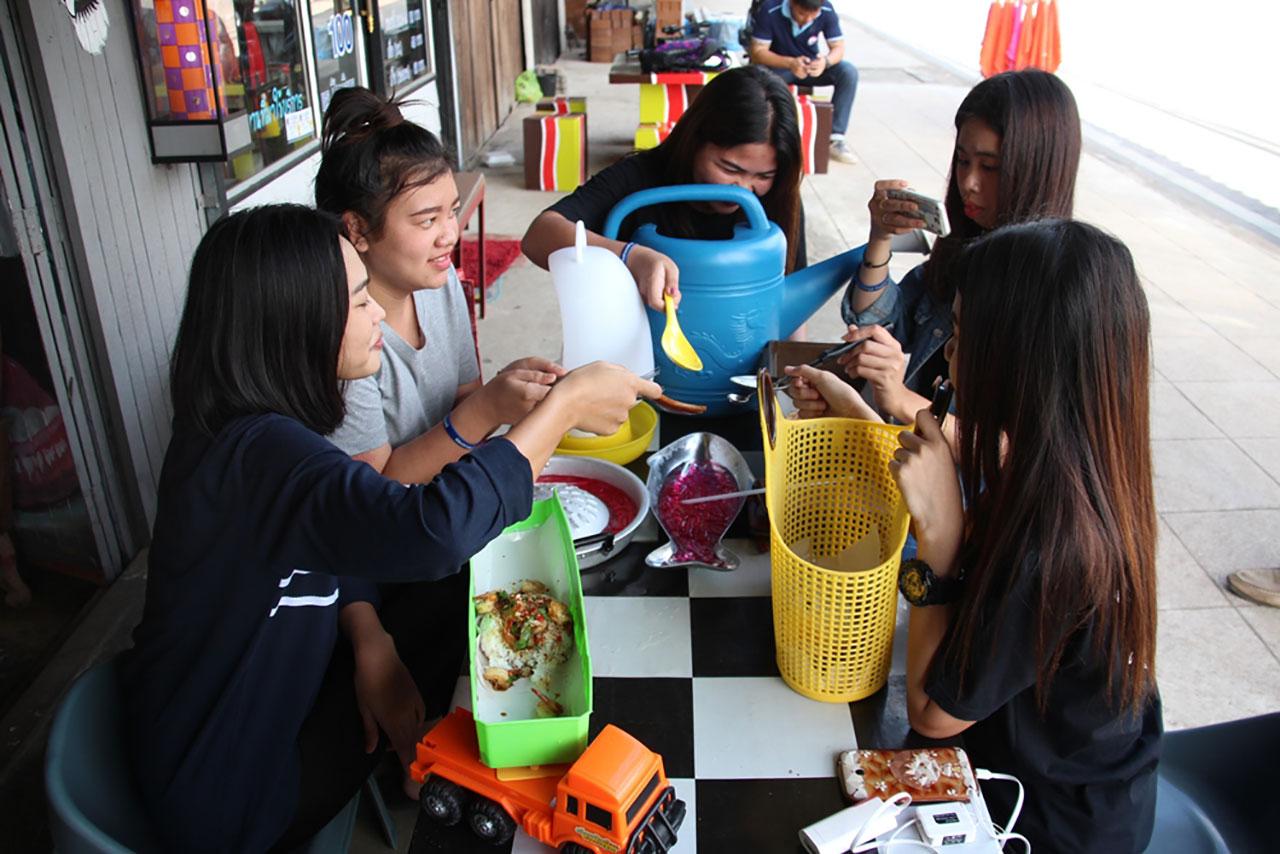 ขณะที่ลูกค้าต่างบอกว่า เป็นทีเด็ดมากสำหรับข้าวของเครื่องใช้ที่นำมาเป็นภาชนะใส่อาหาร บางครั้งนึกไม่ถึงว่าทางร้านจะเลือกใส่ภาชนะประเภทนี้มาให้ ซึ่งการรับประทานก็อาจจะไม่สะดวกสบายเหมือนเช่นจานทั่วไป แต่ก็ตั้งใจมากินจึงไม่ได้คิดว่าเป็นความลำบาก ถือเป็นความสนุก ส่วนเรื่องรสชาติและราคาก็รับได้ ถือว่าผ่านกว่าหลายๆ ร้าน โดยส่วนมากลูกค้าทราบข่าวจากกลุ่มเพื่อนปากต่อปาก รวมถึงการถ่ายภาพลงเฟซบุ๊ก จึงได้ชักชวนกันมาลอง.
