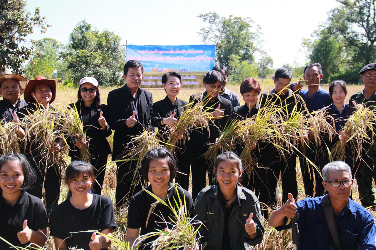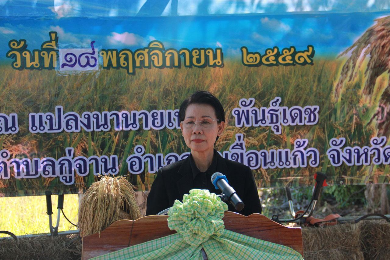 "การลดค่าใช้จ่ายด้านต้นทุนการผลิตข้าวแบบง่ายๆ โดยเฉพาะค่าจ้างแรงงานเก็บเกี่ยวข้าวที่มีราคาแพง เป็นการนำภูมิปัญญาของชาวนามาพัฒนาเป็นนวัตกรรมใหม่ๆ ในการลดต้นทุน เช่น การดัดแปลงเครื่องตัดหญ้ามาเป็นเครื่องเก็บเกี่ยวข้าวที่สาธิตในวันนี้ ซึ่งเกษตรกรใช้ต้นทุนเพียง 340 บาท สามารถลดต้นทุนการผลิตข้าวได้ 300-400 บาทต่อไร่ หากมีการรณรงค์ใช้อย่างแพร่หลาย จะทำให้ทั้งจังหวัดลดต้นทุนการทำนาได้ประมาณ 490 ล้านบาท จึงขอให้เกษตรกรทุนท่านได้นำไปปรับใช้ต่อไป" น.ส.เพ็ญศรี กล่าว