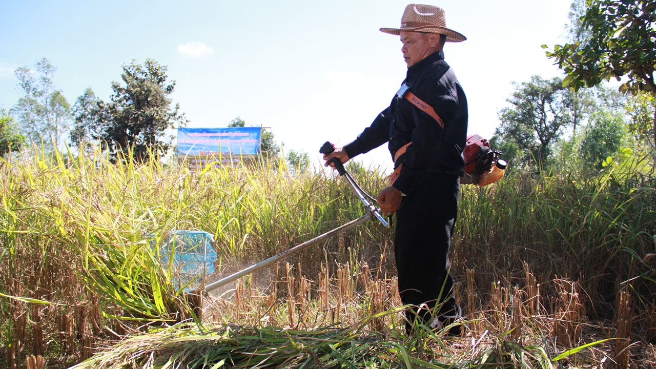ขณะที่ นายไชยยงค์ พันเดช อายุ 50 ปี อาชีพทำนา อยู่บ้านเลขที่ 18 หมู่ 1 ต.กู่จาน อ.คำเขื่อนแก้ว จ.ยโสธร กล่าวว่า วันนี้มาดูการสาธิตใช้เครื่องตัดหญ้าดัดแปลงมาเกี่ยวข้าว ทำให้ตนอยากจะได้เครื่องแบบนี้ไปใช้ในที่นาของตนบ้าง เพราะทำให้ลดต้นทุน และสะดวกต่อการเก็บเกี่ยวผลผลิต.