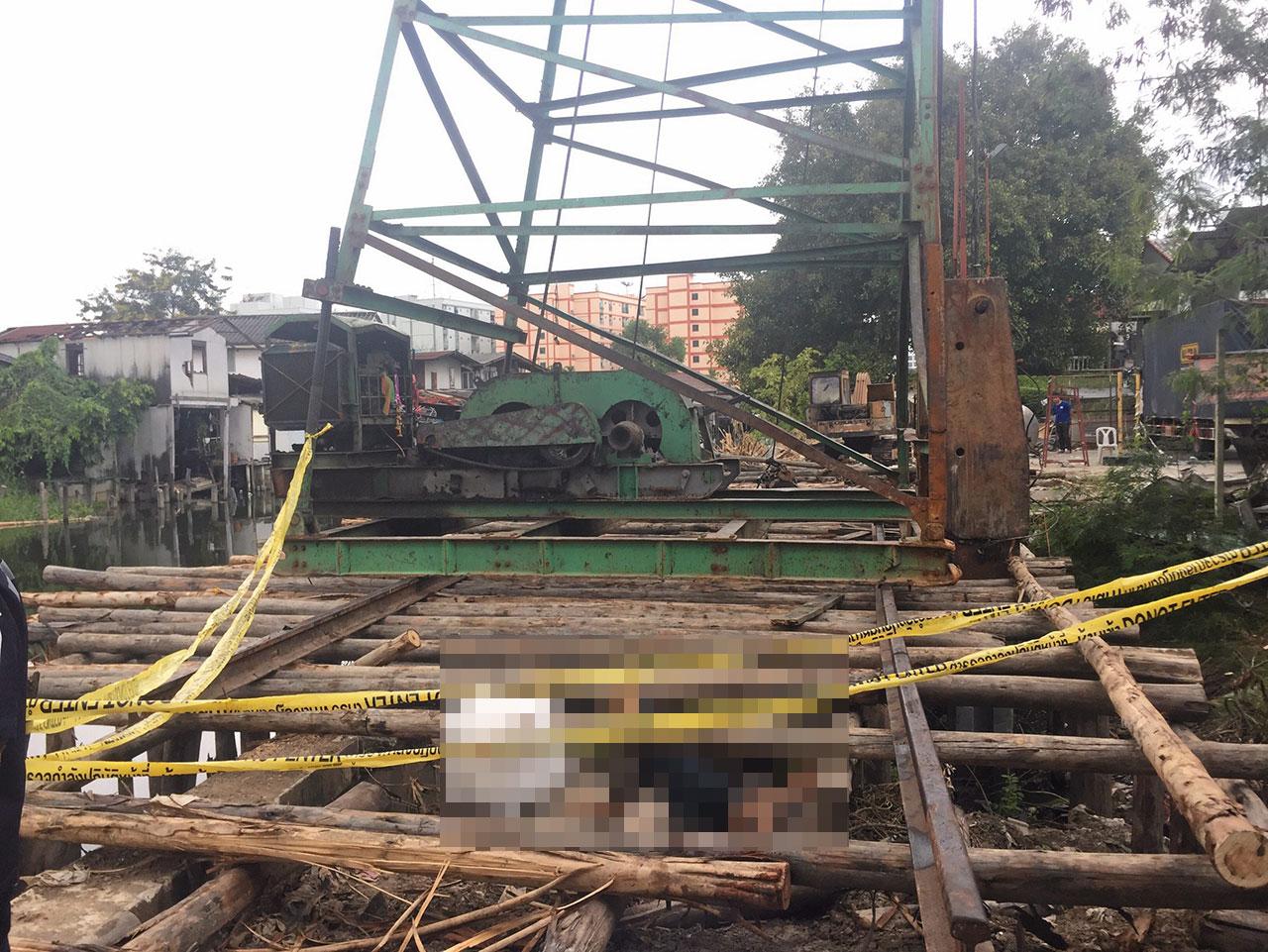 ที่เกิดเหตุเป็นไซต์งานก่อสร้างเขื่อนทางเดินริมคลองลาดพร้าว บริเวณท้ายซอยดังกล่าว พบศพนายพีรา หรือชิด เดือน อายุ 24 ปี ชาวกัมพูชา อยู่บ้านเลขที่ 75/727 หมู่ 9 ต.ละหาร อ.บางบัวทอง จ.นนทบุรี สภาพนอนหงาย โดยขาทั้ง 2 ข้างชี้ฟ้าพาดอยู่บนนั่งร้านไม้ยูคาลิปตัส สวมเสื้อเชิ้ตแขนยาวลายทาง สีเทา-ดำ นุ่งกางเกงยีนส์ บริเวณเหนือศีรษะพบกระจุกเศษผมติดอยู่ที่เส้นเหล็กราง ใกล้กันพบปั้นจั่นตอกเสาเข็มมีทั้งหมด 11 ชั้น ความสูงประมาณ 18 เมตร เจ้าหน้าที่จึงเก็บรวบรวมไว้เป็นหลักฐาน
