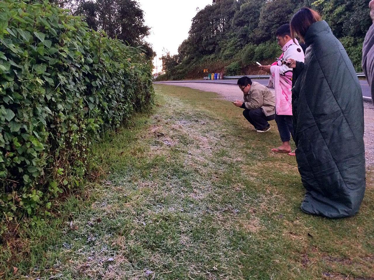 เมื่อเวลา 06.00 น. วันที่ 21 พ.ย.นี้ บรรยากาศท่องเที่ยวบนยอดดอยอินทนนท์ อ.จอมทอง จ.เชียงใหม่ ยังเป็นสุดยอดนิยมของนักท่องเที่ยวที่แห่กันขึ้นไปรอชมความงดงามของแสงแรกของดวงอาทิตย์ และเหมยขาบ หรือแม่คะนิ้ง หรือน้ำค้างแข็งบนยอดหญ้าและใบไม้ ในเช้าวันนี้สมใจอยาก เมื่ออากาศบนยอดดอยตั้งแต่กิ่วแม่ปาน อุณหภูมิลดลงถึง 3 องศาเซลเซียส ตามยอดหญ้าแม่คะนิ้ง หรือน้ำค้างแข็งเกาะติดเป็นเกล็ดขาวงดงามมาก และเป็นแนวยาวขึ้นไปตามทางขึ้นสู่ยอดดอยร่วม 5 กม. สร้างความตื่นตาตื่นใจให้กับนักท่องเที่ยวเป็นอย่างมาก พากันบันทึกภาพกันอย่างประทับใจที่ได้ขึ้นมาเห็นแม่คะนิ้งแรกของปีนี้ นอกจากนี้ ที่กิ่วแม่ปาน ยังได้ชมดวงอาทิตย์โผล่ขึ้นเหนือขอบฟ้าเมื่อแสงหลายหลากสีโผล่งดงามมาก เป็นที่ตื่นตาตื่นใจยิ่ง สำหรับอุณหภูมิบนยอดดอยจุดสูงสุด อุณหภูมิ 4 องศาเซลเซียส