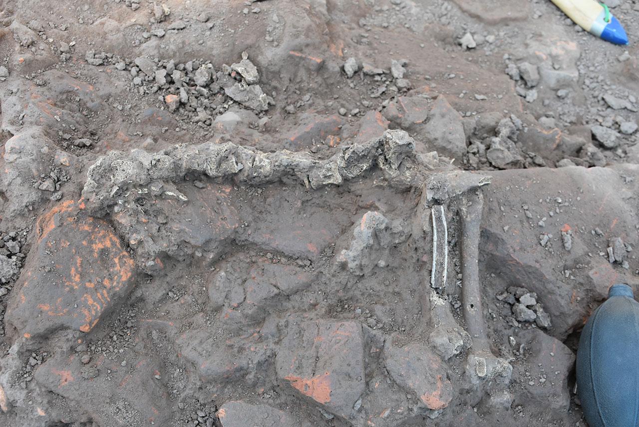 ล่าสุดวันนี้ นักโบราณคดี ยังพบ กระดูกสันหลังโครงร่างสัตว์ ไม่ทราบชนิด สภาพเปื่อย ถูกฝังนอนเรียงอยู่ตรงกลาง ระหว่างโครงกระดูกมนุษย์ที่สมบูรณ์และไม่สมบูรณ์ทั้ง 2 โครงดังกล่าว พร้อมพบเศษวัตถุโบราณทั้งกระเบื้องเคลือบ อิฐหัก