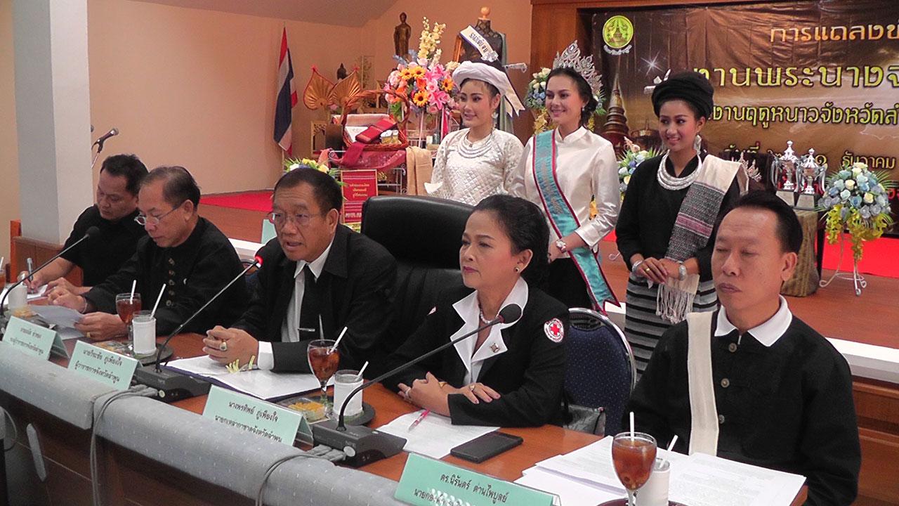 เมื่อวันที่ 22 พ.ย.59 ที่ศาลากลางจังหวัดลำพูน นายวีระชัย ภู่เพียงใจ ผวจ.ลำพูน เป็นประธานการแถลงข่าวการจัดงานพระนางจามเทวีและงานฤดูหนาว ปี 2559 ซึ่งจัดขึ้นในวันที่ 2-11 ธ.ค.59 ณ บริเวณหน้าสนามกีฬากลางจังหวัดลำพูน เพื่อเทิดพระเกียรติพระนางจามเทวีปฐมกษัตริย์แห่งนครหริภุญไชย และเพื่อเผยแพร่ชื่อเสียงของจังหวัดลำพูน รวมทั้งเพื่อส่งเสริมด้านการท่องเที่ยวของจังหวัด ในงานจะจัดให้มีการจัดนิทรรศการเทิดพระเกียรติ พระบาทสมเด็จพระปรมินทรมหาภูมิพลอดุลยเดช โดยองค์การบริหารส่วนจังหวัดลำพูนในหัวข้อ "คิดถึงพ่อ" เพื่อถ่ายทอดเรื่องราว คุณงามความดีตามกระแสพระราชดำรัส เพื่อสืบสานพระราชปณิธานของพระองค์, การออกร้านแสดงและจำหน่ายสินค้า ของดีแต่ละอำเภอ, การจำหน่ายสินค้าหนึ่งตำบลหนึ่งผลิตภัณฑ์, การออกร้านกาชาด เพื่อจำหน่ายสินค้าสิ่งของเครื่องใช้ที่จำเป็นและเสื้อผ้ายี่ห้อดังสินค้าส่งออกต่างประเทศในราคาย่อมเยา, การจำหน่ายสินค้าราคาประหยัด, การประกวดนางสาวลำพูน ซึ่งจะจัดประกวดในชุดพื้นเมืองชาวยองมีการแสดงของนักเรียน และการประกวดร้องเพลงเทิดทูนพระคุณพ่อ