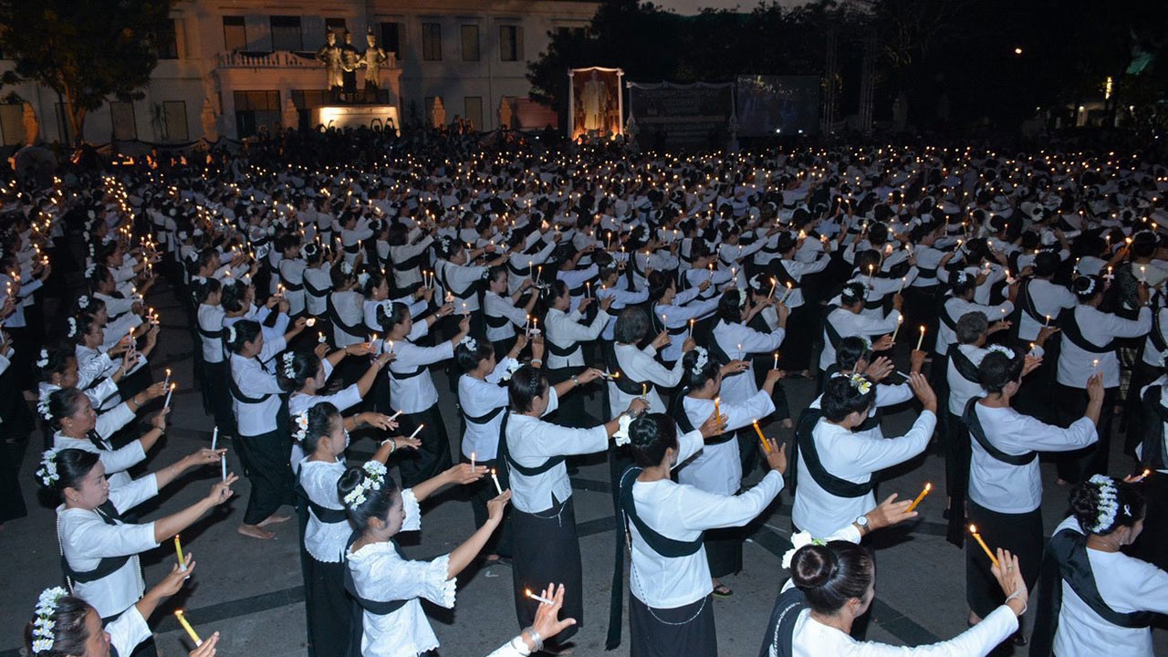 กลุ่มช่างฟ้อนกว่า 1,400 คน ร่วมฟ้อนเทียนอย่างอ่อน ช้อยงดงาม ในงาน “มหกรรมการแสดงพื้นบ้านล้านนา” พลังศิลปินรวมใจ แสดงความอาลัยแด่ พระบาทสมเด็จพระปรมินทรมหาภูมิพล อดุลยเดช ซึ่งกระทรวงวัฒนธรรม ร่วมกับ จ.เชียงใหม่ จัดขึ้นที่ลานพระ บรมราชานุสาวรีย์สามกษัตริย์ อ.เมืองเชียงใหม่.
