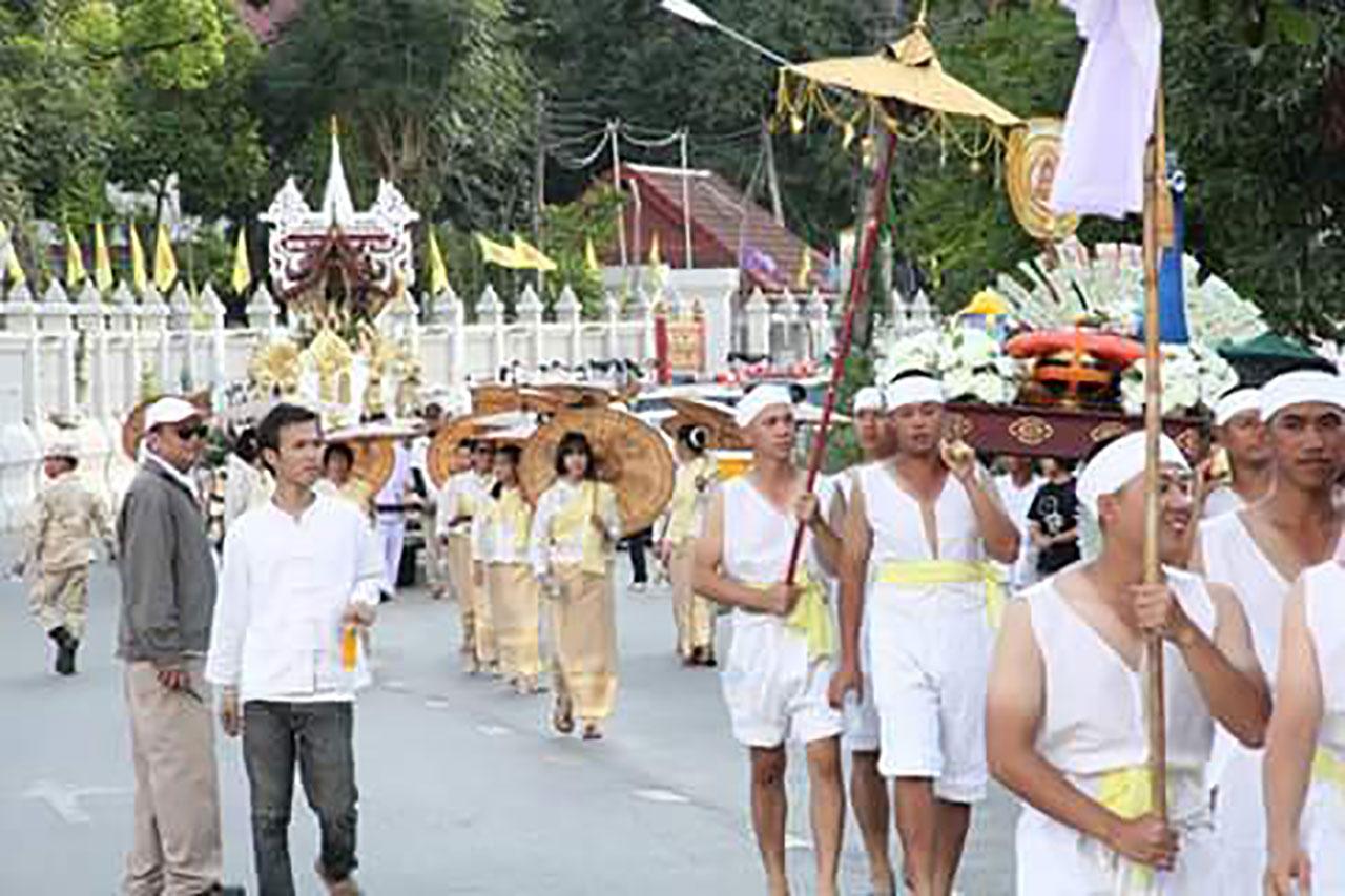 ทั้งนี้ ทางศิษยานุศิษย์ได้จัดงานบุญอย่างยิ่งใหญ่ มีขบวนแห่ตุงแบบล้านนา ขบวนกางจ้อง ขบวนหาบเงินหาบทองและรถขบวนแสดงพระบรมฉายาลักษณ์ของพระบาทสมเด็จพระปรมินทรมหาภูมิพลอดุลยเดช ทรงเข้ากราบนมัสการเยี่ยมหลวงพ่อเกษม ที่กุฏิต้นไผ่บริเวณสุสานไตรลักษณ์เมื่อ พ.ศ.2536
