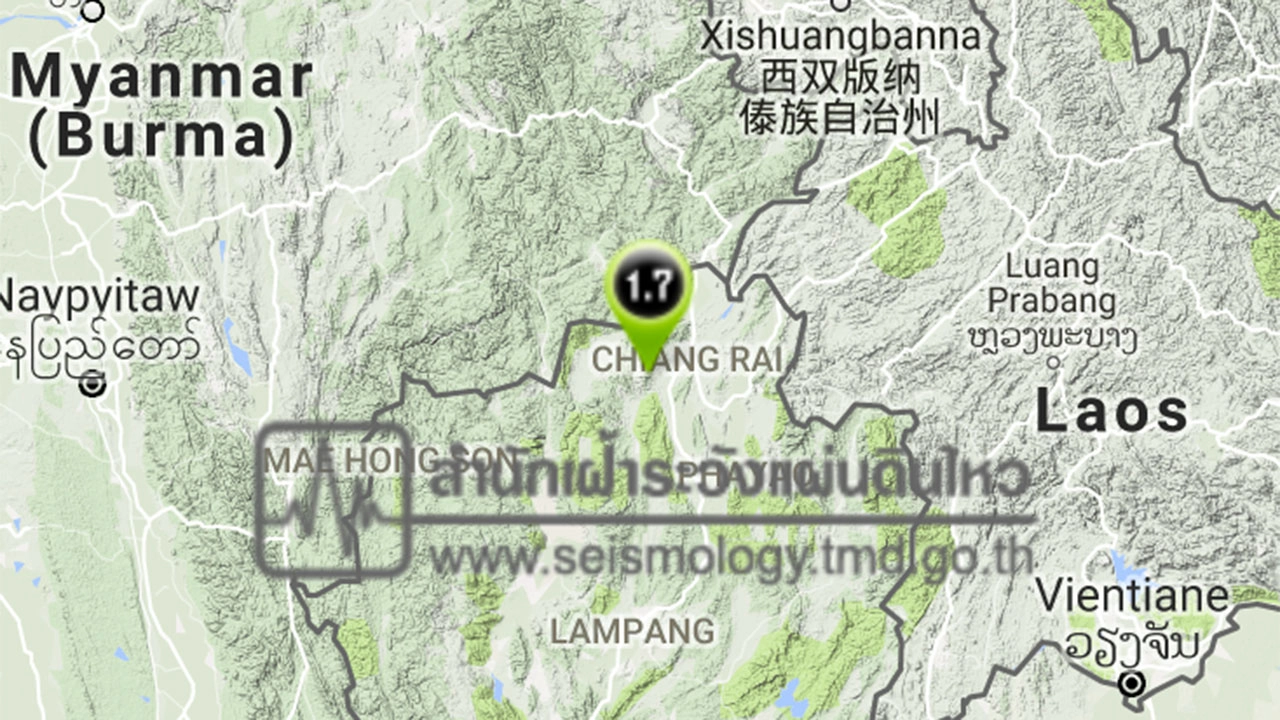 เกิดเหตุ แผ่นดินไหวขนาดความรุนแรง 1.7 บริเวณ อ.เมือง จ.เชียงราย ยังไม่พบรายงานมีความเสียหาย