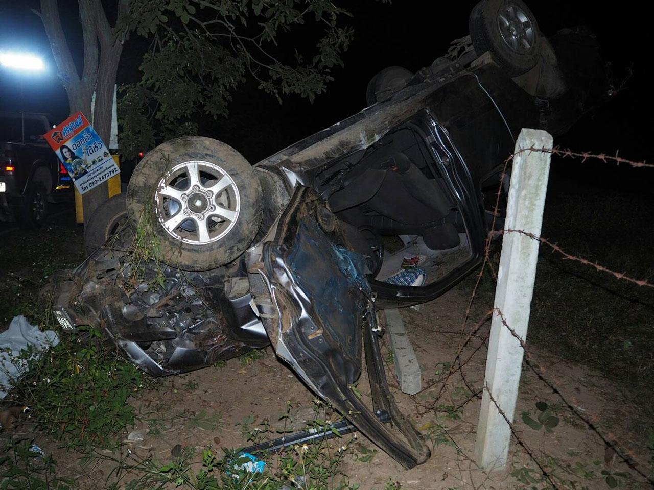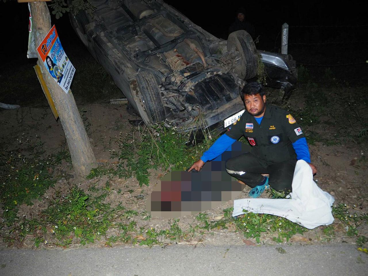 เบื้องต้น เจ้าหน้าที่สันนิษฐานว่า คนขับรถคงจะขับมาด้วยความเร็ว เมื่อมาถึงที่เกิดเหตุซึ่งเป็นทางโค้ง รถเกิดเสียหลักพลิกคว่ำหลายตลบ ชนเสาปูนรั้วข้างทางหัก ก่อนไปชนกับต้นงิ้วข้างทางจนหักสะบั้น นายสมภพผู้ตายกระเด็นออกจากรถ เป็นเหตุให้เสียชีวิตดังกล่าว ซึ่งเจ้าหน้าที่จะได้สอบสวนหาสาเหตุที่แท้จริง เพื่อดำเนินการตามกฎหมายต่อไป.