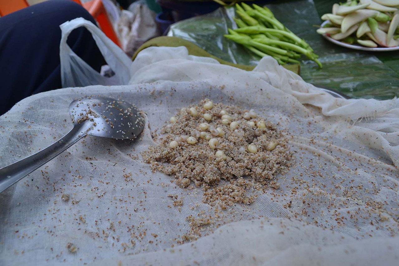 ปลายปีเข้าสู่หน้าหนาว ต่อเนื่องข้ามปี คนพิษณุโลกสองแคว มี ‘ไข่มดดิน’ กินกันทุกปี พ่อค้ามีทั้งที่ขุดมาขายเอง และรับมาขาย สนนราคาไม่ใช่ถูกๆ กก.ละ 750-800 บาท ถ้าเป็นไข่เป้ง ขายกันที่หลักพัน ยำใส่พริก น้ำปลา มะนาว สุดแซ่บ...