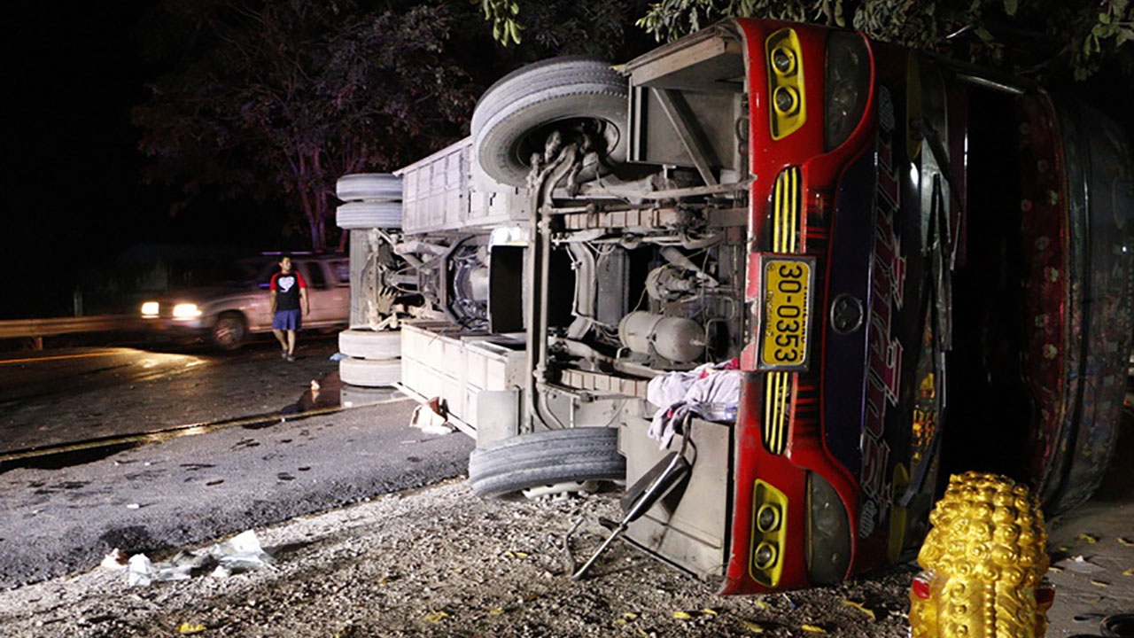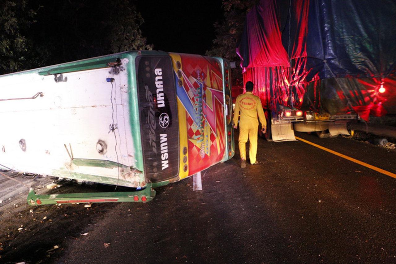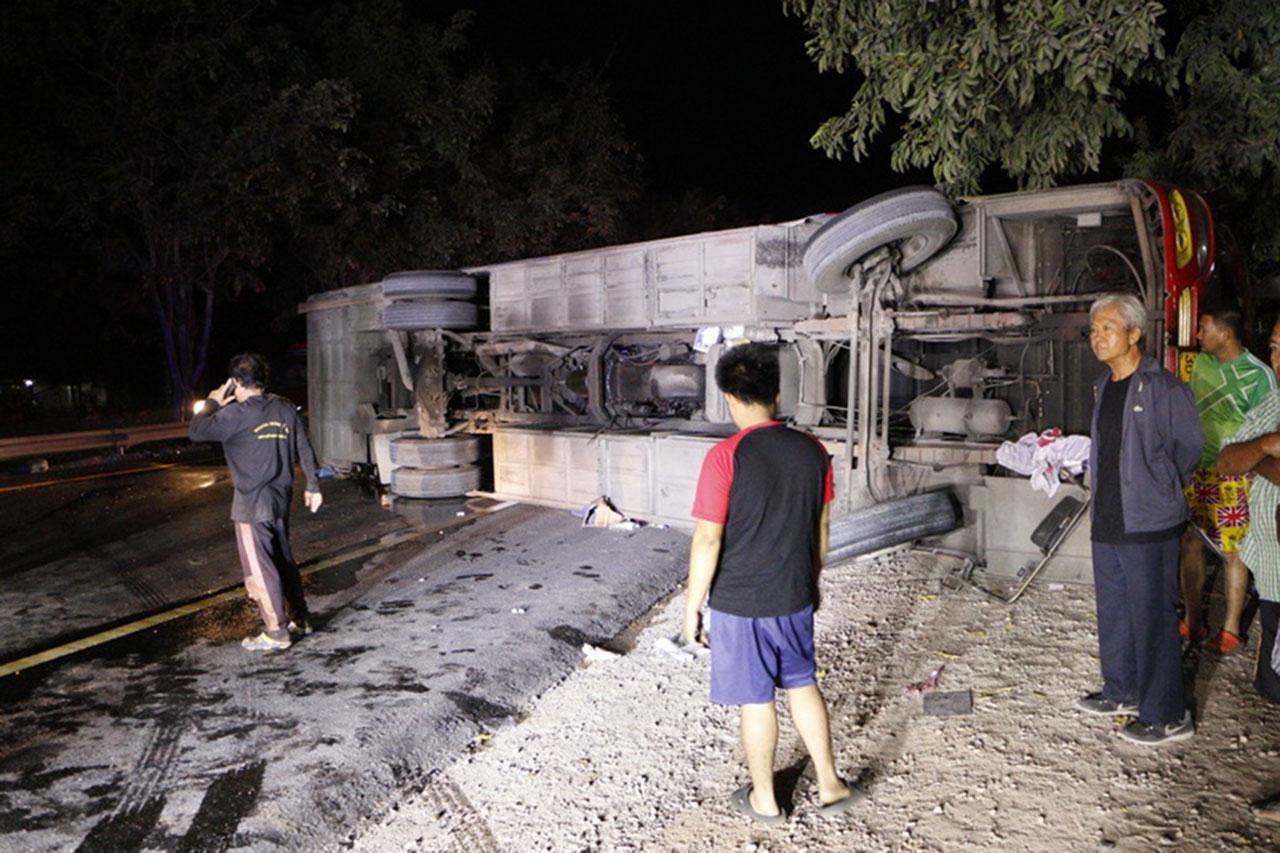 เมื่อเวลา 04.00 น. วันที่ 22 ธันวาคม ร.ต.อ.จักรพงษ์ ใจนักรบ รองสารวัตรสอบสวน สถานีตำรวจภูธรเมืองกำแพงเพชร รับแจ้งว่ามีเหตุรถบัสคว่ำที่บนถนนสายพหลโยธิน หมู่ 2 ต.อ่างทอง อ.เมือง จ.กำแพงเพชร มีคนเจ็บจำนวนมาก จึงเดินทางไปตรวจสอบพร้อมหน่วยกู้ชีพโรงพยาบาลกำแพงเพชร หน่วยกู้ภัยข่าวภาพกำแพงเพชร หน่วยกู้ภัยมูลนิธิสว่างกำแพงเพชรธรรมสถาน