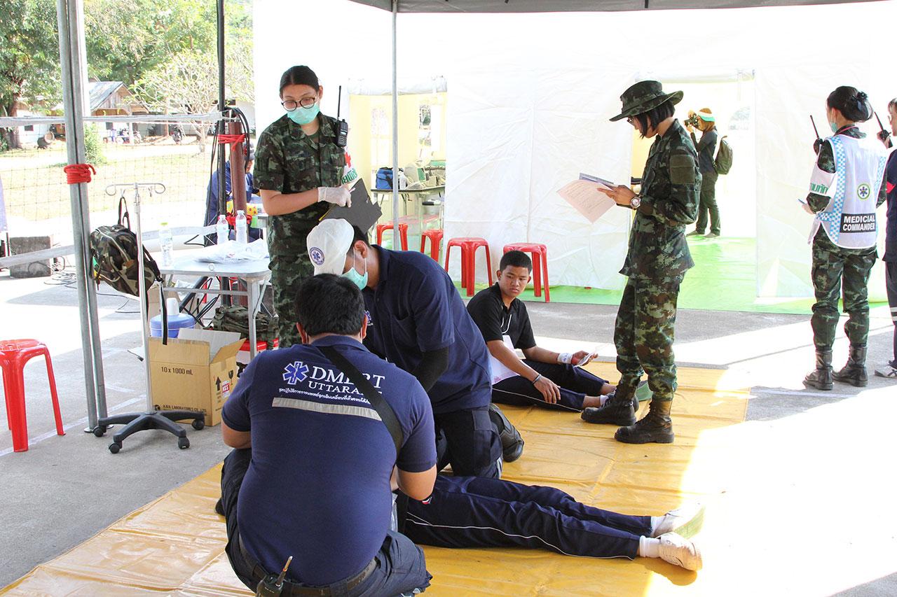 การซักซ้อมครั้งนี้ โรงพยาบาลค่ายพิชัยดาบหัก ได้มีส่วนร่วมกับโครงการดังกล่าว ซึ่งทางกองทัพบกมีนโยบายให้ทหารทุกหน่วยงานที่เกี่ยวข้องให้มีส่วนร่วมในวันเดียว พล.ต.ทวีศักดิ์ วินิสร ผบ.มทบ.35 ได้มาเยี่ยม ให้กำลังใจแก่กำลังพลที่มาปฏิบัติหน้าที่ โรงพยาบาลสนาม ที่ ค่าย ตชด.314 อ.ฟากท่า โดยส่งแพทย์จำนวน 1 นาย และพยาบาล 3 ราย พร้อมด้วยกำลังพล กว่า 10 นาย เพื่อมาร่วมปฏิบัติการร่วมซักซ้อมค้นหา กรณีเกิดอุทกภัยพิบัติ น้ำป่าไหลหลากและดินโคลนถล่ม ในพื้นที่จังหวัดอุตรดิตถ์