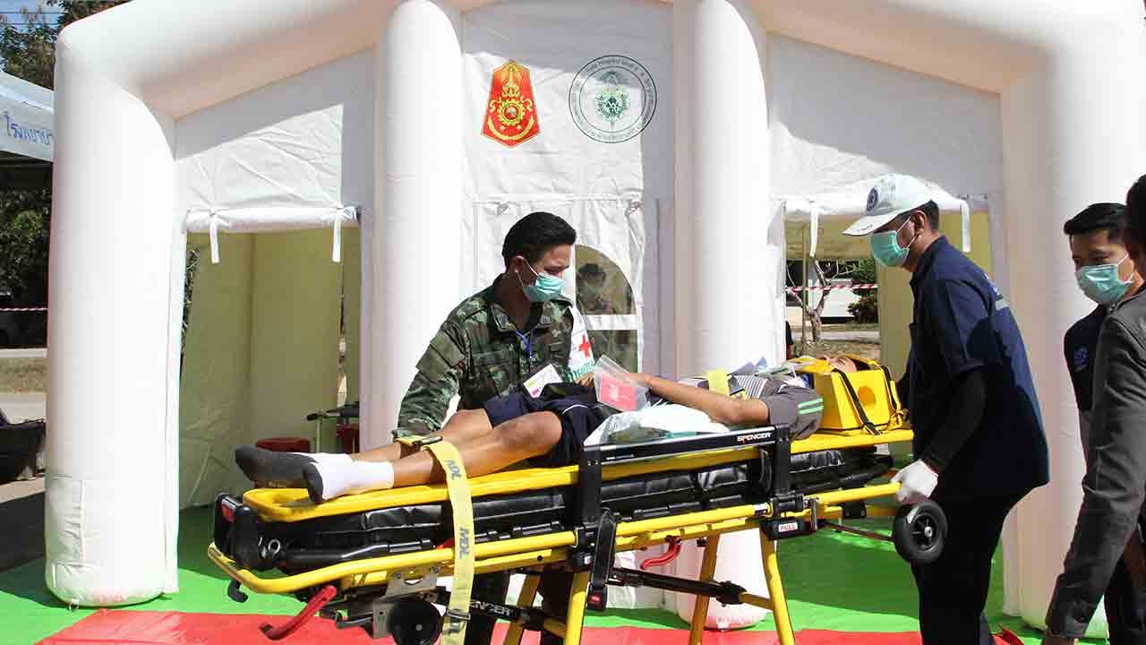 ทั้งนี้ ได้มีการจัดฝึกและซ้อมแผนเต็มรูปแบบ (Full-scale Exerise:FEX) หน่วยงานเข้าร่วม ประกอบไปด้วย รพ.ค่ายพิชัยดาบหักร่วม ปภ.จังหวัด โรงพยาบาลอุตรดิตถ์ พร้อมด้วยโรงพยาบาลฟากท่า สนง.สาธารณสุขอำเภอฟากท่า เพื่อทดสอบระบบการบัญชาการเหตุการณ์จังหวัดอุตรดิตถ์และอำเภอ รวมทั้งการประสานการปฏิบัติร่วมกันของหน่วยงาน ภาคส่วนต่างๆ ในพื้นที่เพื่อจัดการสาธารณภัย ซึ่งประกอบไปด้วยภารกิจ หลายด้าน อาทิ การทดสอบแผนปฏิบัติการของชุมชน หมู่บ้าน และองค์กรปกครองท้องถิ่น ระบบการติดต่อสื่อสาร การอพยพประชาชน การบริหารจัดการศูนย์อพยพ การปฏิบัติการทางแพทย์ การเชื่อมต่อระบบสื่อสาร ไฟฟ้า เส้นทางคมนาคม การค้นหากู้ภัย และการบริหารภายในศูนย์บัญชาการเหตุการณ์ของทุกระดับ