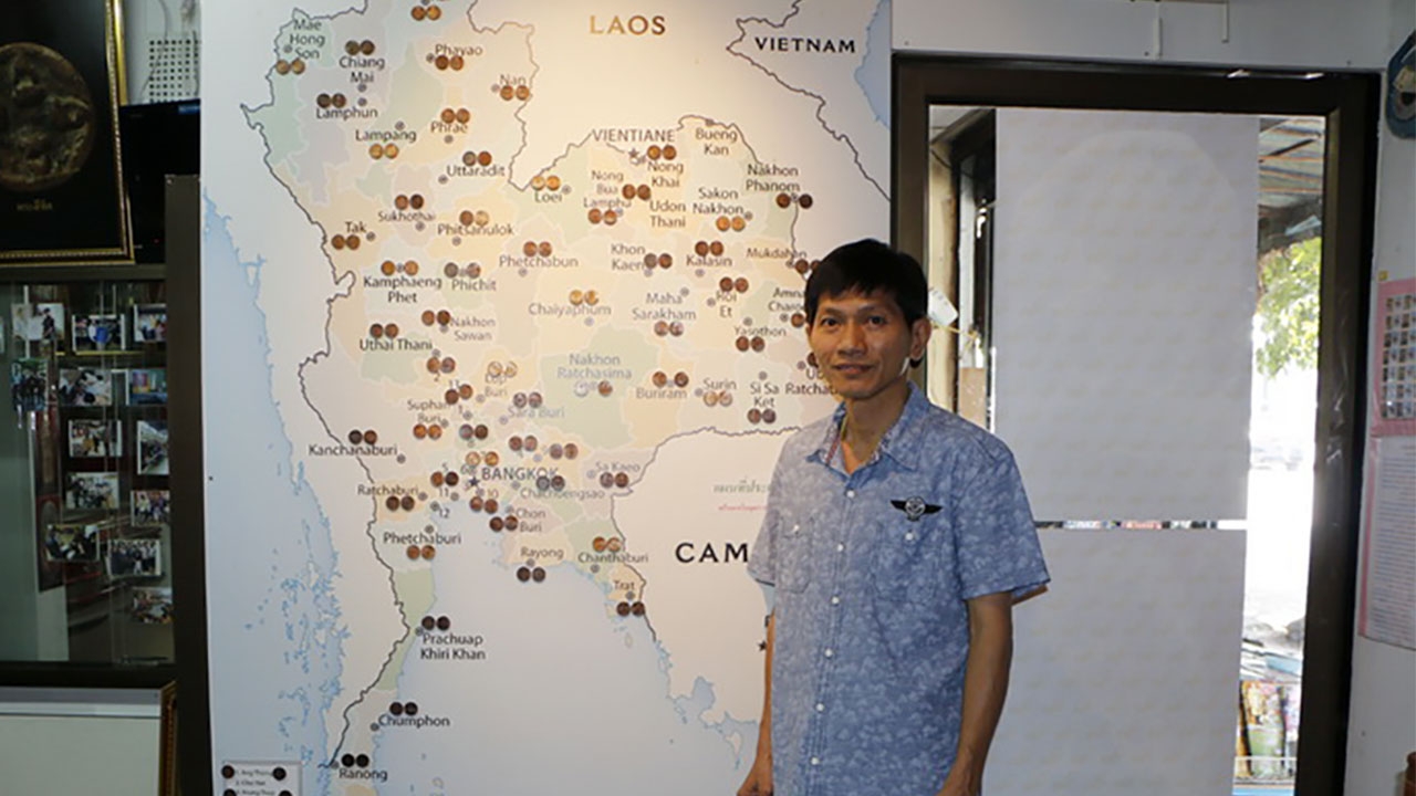 แห่งเดียวของไทย หนุ่มใหญ่นักสะสมแห่งชากังราว สะสมเหรียญประจำจังหวัดครบทุกจังหวัด นำมาติดไว้กับแผนที่ประเทศไทย โชว์ทั้งด้านหน้าด้านหลัง มีสัญญลักษณ์ประจำจังหวัด สถานที่สำคัญ วัฒนธรรม ประเพณีที่เป็นเอกลักษณ์...