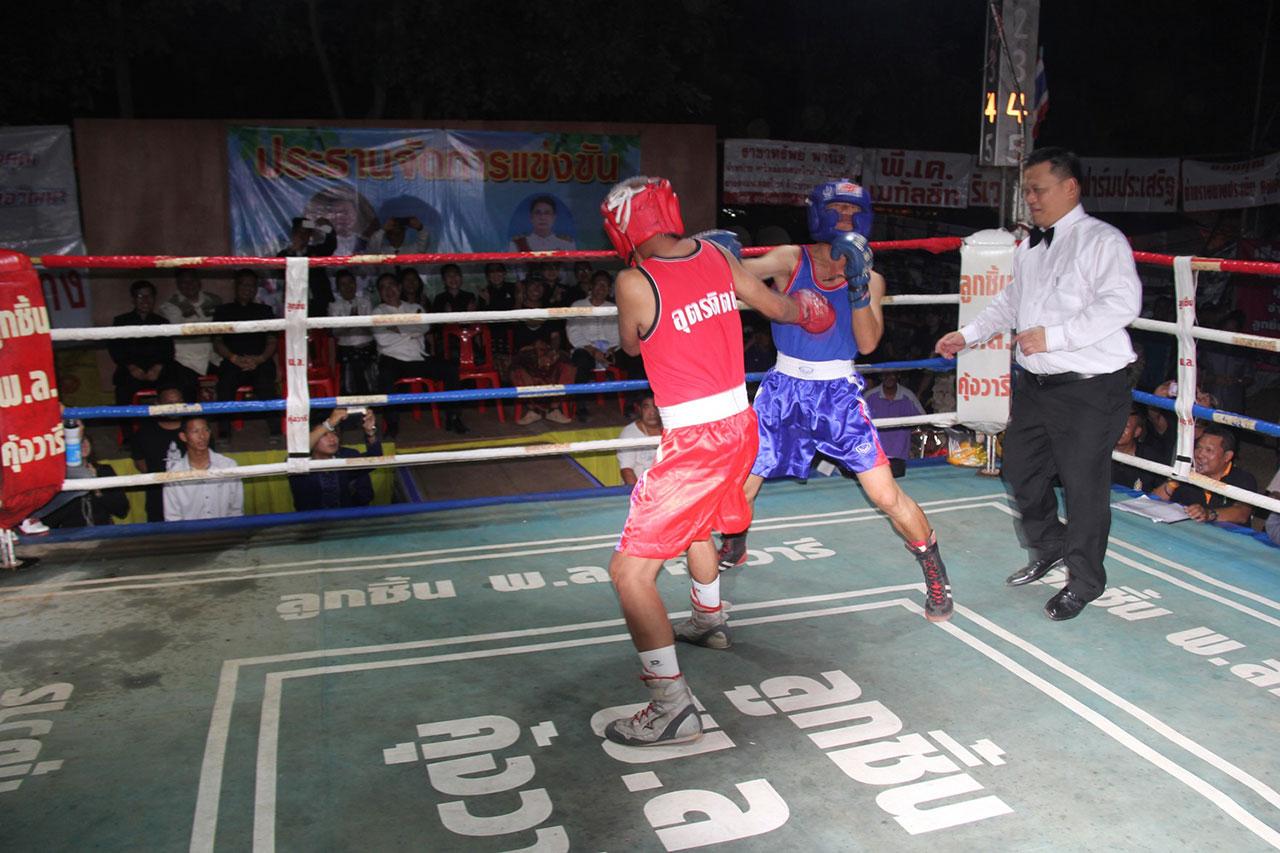 ทั้งนี้ ดร.สุรชัย มณีประกร ปลัดจังหวัดอุตรดิตถ์ ได้เป็นโปรโมเตอร์ จัดให้มวยคู่นี้เป็นคู่พิเศษในนัดล้างตา เนื่องจากประวัตินายอำเภอทั้งสองคน สมัยเรียนเคยชกกันมาตลอด เป็นคู่รักคู่แค้นกันมาอย่างยาวนาน สร้างความสนุกสนานให้กับกองเชียร์เป็นอย่างมาก ผลการชกเมื่อครบ 3 ยก รวมคะแนนแล้ว ปรากฏว่าทั้งคู่เสมอกัน.