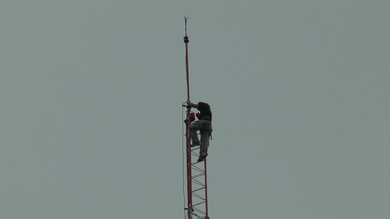 ดีเจสาววิทยุชุมชนเวฬุวันเรดิโอ จ.ตาก ปีนเสาส่งสัญญาณวิทยุสูง 60 เมตร บอกอยากคุยกับ พ.อ.นที ศุกลรัตน์ หลัง กสทช.สั่งปิดสถานี แถมถูกคนหลอกเงิน จะวิ่งเต้นเปิดสถานีให้ สูญเงินเป็นล้าน แต่ก็ยังเปิดไม่ได้ โชคดีเจ้าหน้าที่ช่วยทันปลอดภัยแล้ว