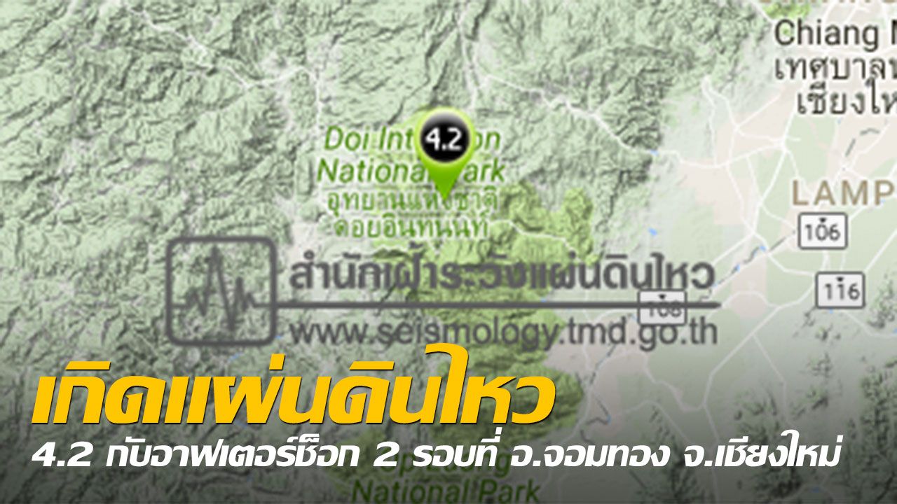 สำนักเฝ้าระวังแผ่นดินไหว กรมอุตุนิยมวิทยา รายงานเมื่อเวลา 15.35 น. เกิดแผ่นดินไหวขนาด 4.2 ความลึก 4 กม. จุดศูนย์กลางบริเวณ อ.จอมทอง จ.เชียงใหม่ มีประชาชนรับรู้ถึงแรงสั่นสะเทือนเป็นวงกว้าง โดยเฉพาะตึกสูงในเขต อ.เมือง จ.เชียงใหม่ ขณะที่เบื้องต้นยังไม่มีรายงานความเสียหาย