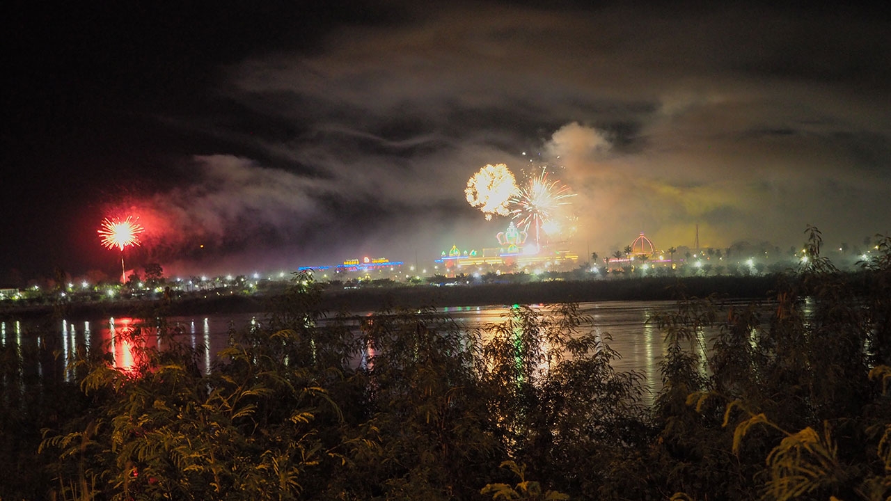 ฝั่งคิงส์โรมัน เขตเศรษฐกิจพิเศษของจีน เมืองต้นผึ้ง สปป.ลาว ตรงข้ามสามเหลี่ยมทองคำ จ.เชียงราย จุดพลุฉลองวันตรุษจีนยิ่งใหญ่ สว่างไสวทั่วบริเวณ นานนับชั่วโมง ...