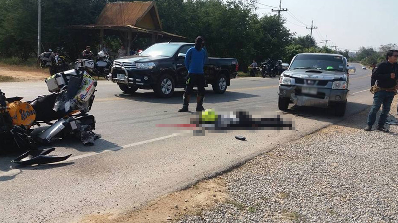 หนุ่มใหญ่เมืองนนท์ ขี่บิ๊กไบค์พร้อมกลุ่มเพื่อนลงจากดอยเสมอดาว ขณะมุ่งเข้า อ.เมืองน่าน พุ่งชนกระบะช่วงโค้งหักศอก ร่างกระเด็นฟาดพื้นสาหัส แพทย์เร่งช่วยแต่ยื้อชีวิตไว้ไม่ได้