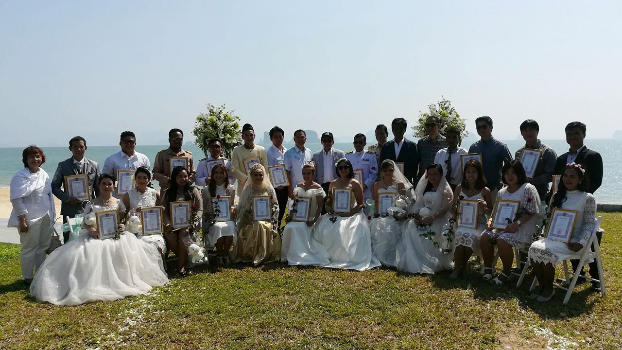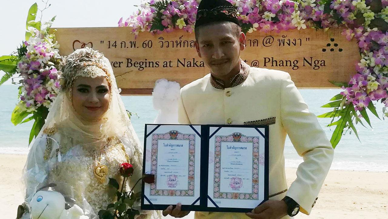 นายบัญชา ธนูอินทร์ นายอำเภอเกาะยาว เป็นนายทะเบียนในการจดทะเบียน ท่ามกลางความประทับใจของคู่บ่าวสาว ตลอดจนเพื่อนๆ ญาติๆ และผู้เข้าร่วมเป็นสักขีพยานในการจดทะเบียนสมรสในครั้งนี้ เนื่องจากสถานที่ดังกล่าวมีตำนานเกี่ยวกับความรักของพญานาคในอดีตกาลที่ปรากฏเป็นสถานที่ต่างๆ ในอ่าวพังงาและจังหวัดใกล้เคียงในปัจจุบัน และเมื่อมองจากจุดชายหาดสถานที่จดทะเบียนสมรส ในท้องทะเลจะเห็นทิวทัศน์ภูเขาเป็นรูปหัวใจ เป็นที่มาของการสืบสานตำนานรักของนาคน้อยที่มีต่อคู่รักที่มีความมั่นคงยืนยาวตลอดไป และเป็นจุดที่มองเห็นรูปหัวใจเป็นหนึ่งเดียวในโลก