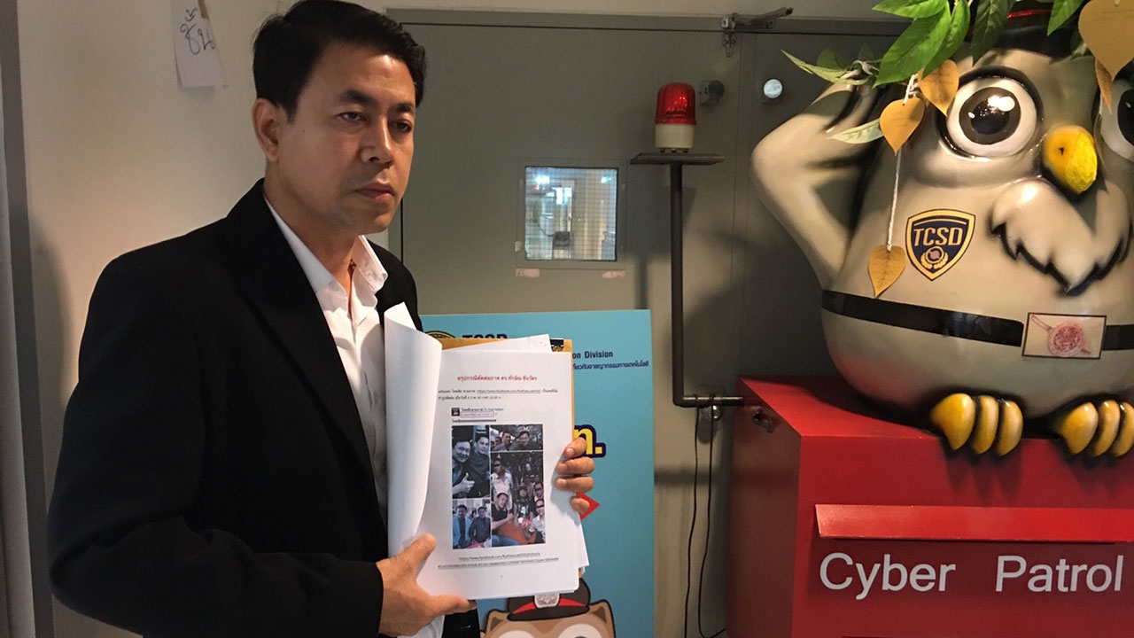 เมื่อเวลา 10.30 น. 14 ก.พ. ที่ บก.ปอท. นายชุมสาย ศรียาภัย ทนายความรับมอบอำนาจจาก นายทักษิณ ชินวัตร อดีตนายกรัฐมนตรี เดินทางเข้าแจ้งความต่อ พ.ต.ท.ปิติณัช ประชุมสุข รอง ผกก.3 บก.ปอท. ร้องทุกข์ให้เจ้าหน้าที่ตรวจดำเนินคดีกับบุคคลที่ได้ทำการตัดต่อเอาภาพของ นายทักษิณ มาเดินคล้องแขนกับนายไซซะนะ แก้วพิมพา ผู้ต้องหาคดียาเสพติดรายใหญ่ที่ถูกตำรวจ บช.ปส. จับกุมดำเนินคดี ก่อนนำไปเผยแพร่ในโลกโซเชียล