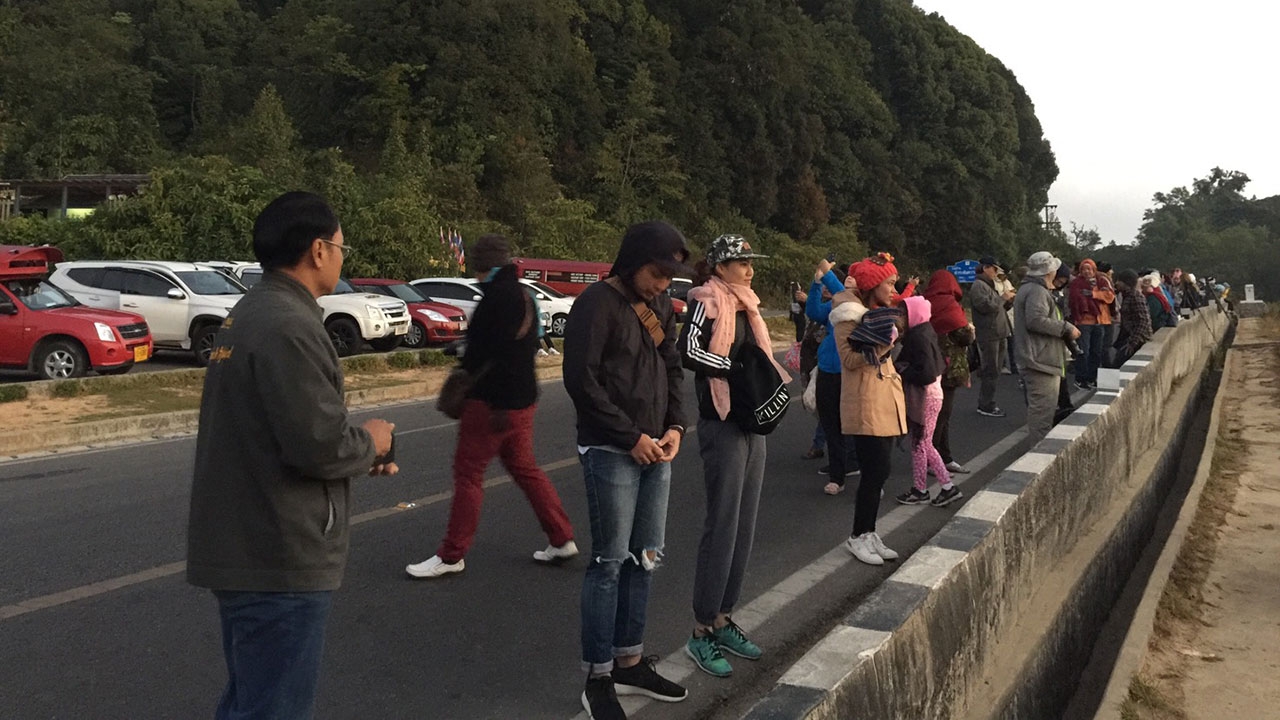 เมื่อเวลา 08.00 น. วันที่ 16 ก.พ. 60 นายรุ่ง หิรัญวงษ์ หัวหน้าอุทยานแห่งชาติดอยอินทนนท์ อ.จอมทอง จ.เชียงใหม่ เปิดเผยว่า เช้านี้ที่ยอดดอยอินทนนท์ ยังคงหนาวเย็นอุณหภูมิวัดได้ต่ำสุด 4 องศาเซลเซียส ส่วนที่กิ่วแม่ปาน 8 องศาเซลเซียส นับว่าหนาวเย็นมาก พระอาทิตย์ขึ้นยามเช้าที่จุดชมวิวกิ่วแม่ปานนั้นยังคงความงดงามเช่นเดิม ขณะที่นักท่องเที่ยวก็ยังทยอยขึ้นมาสัมผัสอากาศหนาวกันอย่างต่อเนื่องไม่ขาดสาย บางคนก็ขึ้นมานอนค้างแรมตั้งแต่ช่วงค่ำที่ผ่านมา และเคยไปสอบถามว่าทำไมถึงเลือกมาเที่ยวช่วงนี้ ไม่มาเที่ยวช่วงที่ผู้คนเยอะ เช่น ช่วงส่งท้ายปีเก่าต้อนรับปีใหม่ นักท่องเที่ยวส่วนใหญ่จะตอบเป็นเสียงเดียวกันว่าดอยอินทนนท์ ทราบดีว่าอากาศจะหนาวเย็นตลอดช่วงหน้าหนาว อีกทั้งช่วงที่ผู้คนเยอะไม่อยากมาเนื่องจากเบียดเสียดยัดเยียดกันมากเกินไป จึงต้องการความเป็นส่วนตัวจึงเลือกมาช่วงนี้ และก็ไม่ผิดหวังอากาศยังหนาวยะเยือก อีกทั้งสภาพอากาศจะเปิดสามารถมองเห็นวิวได้ตลอดสวยงามเหมือนกัน