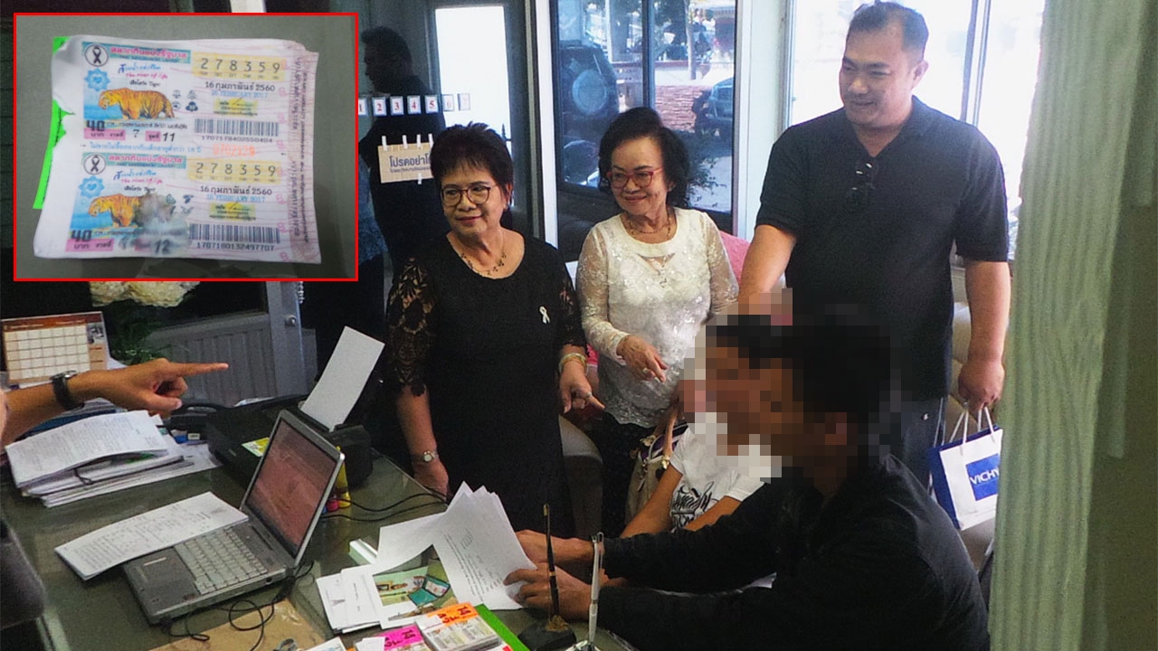 ทั้งนี้ ผู้เสียหายกับเล่าเหตุการณ์ให้ พ.ต.ท.ปรัญญา ฟังว่า เมื่อวันที่ 13 ก.พ.60 ในช่วงสายได้ชวนเพื่อนมาทำบุญปิดทองที่วัดสว่างอารมณ์ โดยให้หลานชายขับรถมาให้ หลังจากปิดทองทำบุญ และให้อาจารย์แป๊ะเจิมหน้าผากเรียบร้อยแล้ว ก็มาหาที่นั่งทานอาหารในร้านก๋วยเตี๋ยว ที่เปิดขายอยู่ในบริเวณวัด ระหว่างที่นั่งอยู่นั้น มีหญิงอายุประมาณ 30 ปี เดินเข้ามาหาในมือมีลอตเตอรี่ชุดอยู่หลายชุด นำมาบอกขายให้ตื๊อจนต้องซื้อ เพราะเห็นว่าทำบุญมาแล้วอาจจะมีโชคตามมา ก่อนที่จะซื้อยังถามแม่ค้าว่าบ้านอยู่ไหน ชื่ออะไร หญิงคนขายบอกว่าบ้านอยู่ จ.เลย หากขายหมดก็จะรีบกลับบ้านเพราะมาหลายวัน พวกตน 2 คน เลยช่วยซื้อไว้คนละ 1 ชุด ชุดละ 7 ใบ ราคาชุดละ 700 บาท จากนั้นคนขายได้หยิบลอตเตอรี่ส่งให้ โดยใส่ซองพลาสติกใสอย่างดีใหม่เอี่ยม เหมือนหวยชุดทั่วๆ ไปที่ขายกันอยู่ เมื่อจ่ายเงินให้ไป หญิงคนขายก็ส่งลอตเตอรี่ให้แล้วยกมือไหว้บอกว่าจะรีบไปขายให้หมดจะได้กลับบ้าน ก่อนจะเดินหายไป
