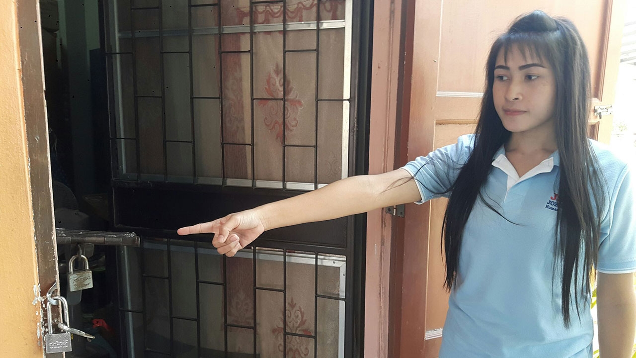 วันที่ 17 ก.พ. ร.ต.อ.เดชา ดินแดน รอง สว.(สอบสวน) สภ.เมืองชลบุรี รับแจ้งมีโจรงัดห้องเช่าไม่มีชื่อ ภายในซอยตรงข้ามโรงเรียนบ้านสวน อุดมวิทยา หมู่ 3 ต.บ้านสวน อ.เมือง จ.ชลบุรี ไปตรวจสอบพบห้องเช่าดังกล่าวมี 2 ชั้น ที่เกิดเหตุเป็นห้องริมสุดชั้นล่างของ น.ส.แสงดาว กุนันทา อายุ 21 ปี ประตูหน้าห้องถูกงัดบานพับหัก ภายในห้องนอนมีรอยรื้อค้นข้าวของกระจุยกระจาย โดยเฉพาะที่ลิ้นชักหัวเตียงนอนและตู้เสื้อผ้า