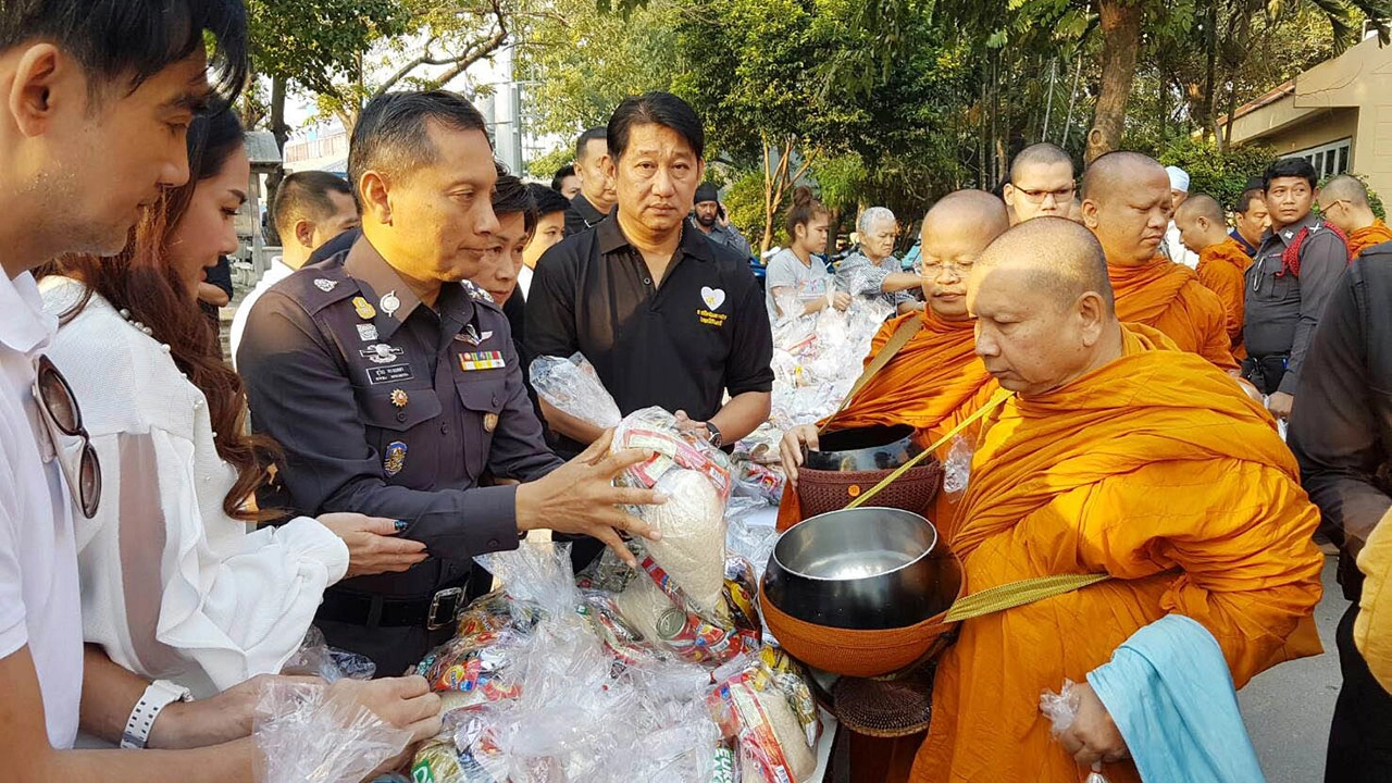 “พล.ต.อ.ดร.สุวิระ ทรงเมตตา” ที่ปรึกษา สบ.10 พ่อค้าแม่ค้า ประชาชนทั่วไป ดาราศิลปินและผู้สื่อข่าวร่วมกันทำบุญตักบาตรข้าวสารอาหารแห้งแด่พระภิกษุสงฆ์และสามเณรจำนวน 199 รูป เพื่อถวายเป็นพระราชกุศลแด่พระบาทสมเด็จพระปรมินทรมหาภูมิพลอดุลยเดช