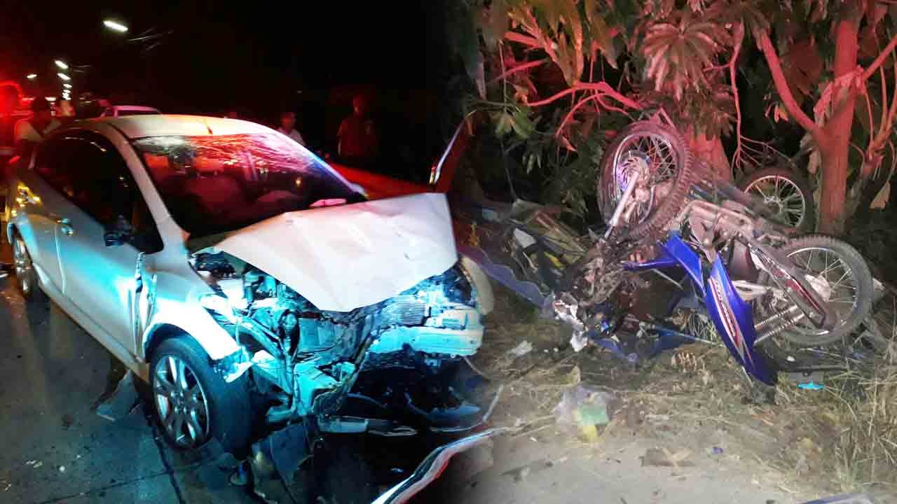 เมื่อเวลา 01.00 น. วันที่ 19 ก.พ. 60 ร.ต.อ.สุชาติ เจริญศรี รอง สว. (สอบสวน) สภ.แสนสุข อ.เมืองชลบุรี รับแจ้งเกิดอุบัติเหตุรถยนต์ชนรถจักรยานยนต์พ่วงข้าง มีผู้เสียชีวิตบริเวณปากซอย 20 ถนนมิตรสัมพันธ์ ต.บ้านปึก อ.เมือง จ.ชลบุรี ไปตรวจสอบพร้อมด้วยกู้ภัยมังกรชลบุรี