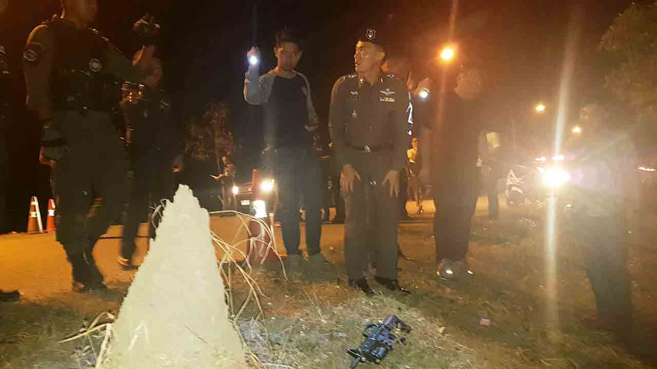 ห่างออกไปบริเวณริมถนน พบอาวุธปืน M16 สภาพดัดแปลงตกแต่ง มีกระสุนในแมกกาซีน 18 นัด ในที่เกิดเหตุพบปลอกกระสุนปืน M16 จำนวน 1 ปลอก เจ้าหน้าที่ตำรวจจึงเก็บไว้เป็นหลักฐาน ส่วนคนร้ายที่ขับขี่รถจักรยานยนต์ ชื่อนายเรวัตร แดงหลุ่ม หรือตู่ อายุ 28 ปี บ้านอยู่หมู่ 1 ต.ภูเขาทอง อ.พระนครศรีอยุธยา หลบหนีไป