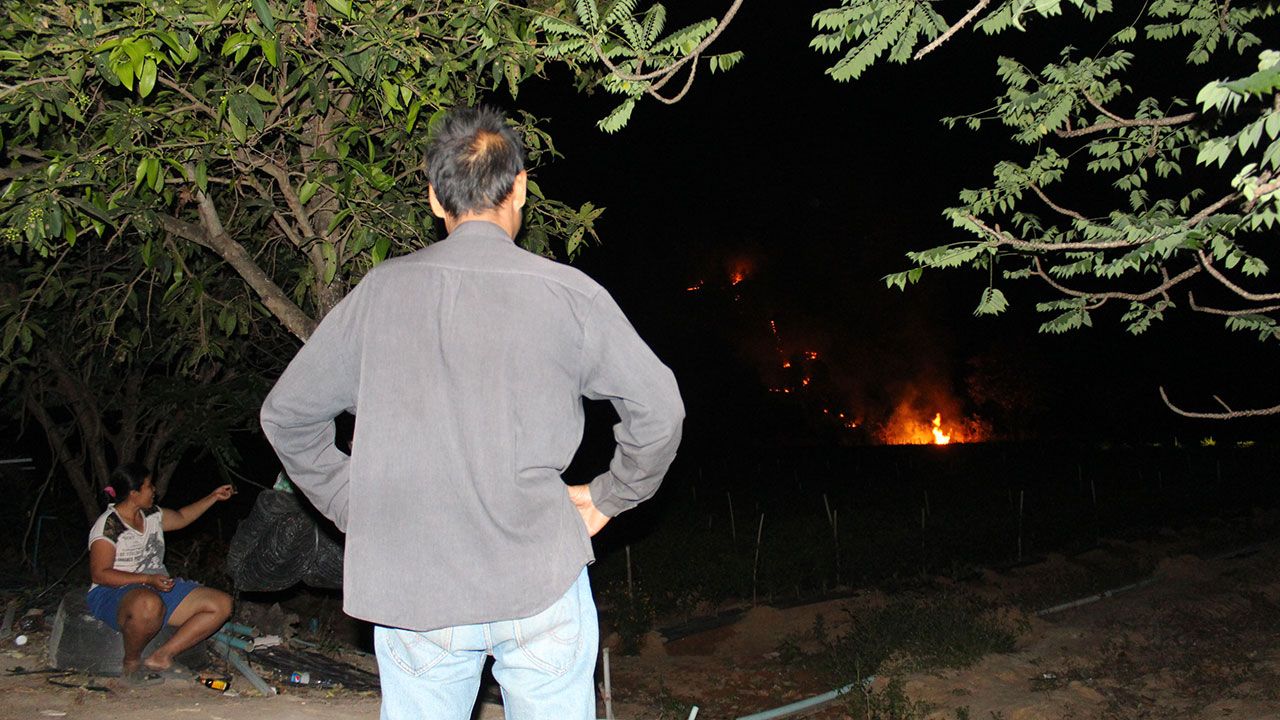 เมื่อวันที่ 19 ก.พ. 60 ผู้สื่อข่าวรายงานสถานการณ์เหตุไฟไหม้ป่าบนเขามะค่า ซึ่งอยู่ในเขตป่าสงวนแห่งชาติป่าครบุรี พื้นที่หมู่ 4 ต.โคกกระชาย อ.ครบุรี จ.นครราชสีมา โดยไฟได้ลุกไหม้ทางด้านทิศใต้ของภูเขาเป็นแนวยาวตั้งแต่ยอดลงมาถึงพื้นดินระยะทางหลายร้อยเมตร ตั้งแต่กลางดึกจนถึงขณะนี้ ชาวบ้านที่อยู่ติดกับตีนเขาต่างพากันหวาดระแวงเกรงว่าไฟป่าจะลุกลามเข้ามาในพื้นที่การเกษตรของตนเอง จึงต้องออกมาสังเกตการณ์อย่าใกล้ชิด พร้อมเตรียมพร้อมอุปกรณ์ที่จะใช้สกัดไฟในกรณีที่ไฟจะลุกลามมาใกล้พื้นที่การเกษตร