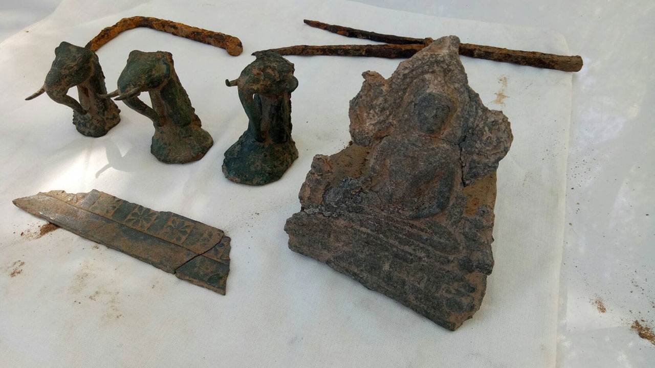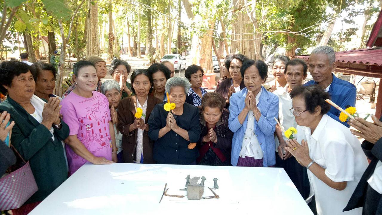 ชาวบ้านฮือฮา พบพระพุทธรูปสำริด วัตถุคล้ายใบเสมา โผล่พ้นดินโบสถ์เก่าวัดโพธิ์ลานช้าง เชื่อเป็นสิ่งที่ชาวบ้านในอดีตจะนำไปร่วมสร้างพระธาตุพนม แต่ต้องเดินเท้าอาจไปไม่ถึง ส่วนคนรู้ข่าวไม่พลาดขอโชค