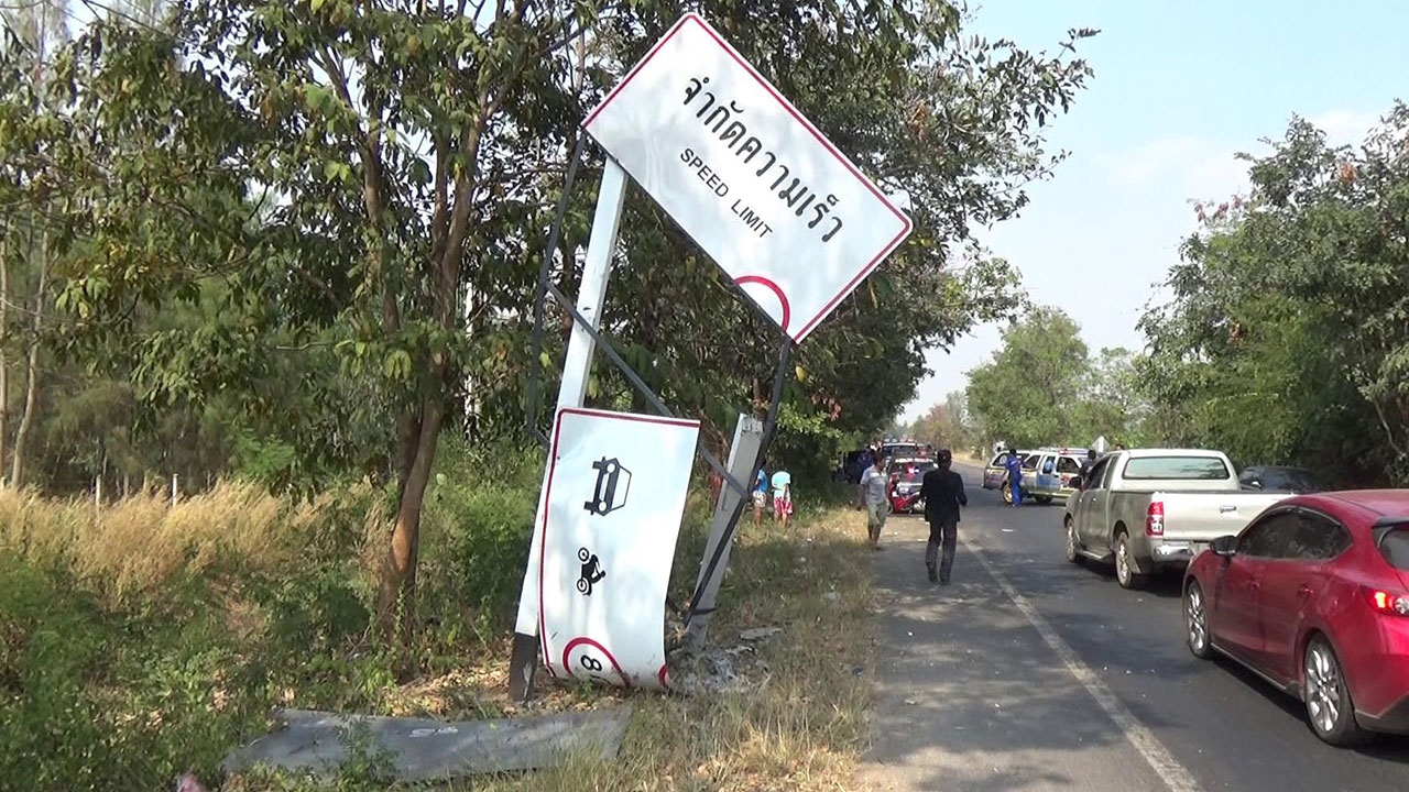 ดาบตำรวจ สภ.บ้านโป่ง ขับกระบะกลับจากงานเลี้ยงรุ่นที่ อ.สวนผึ้ง รถเสียหลักพุ่งชนป้าย ก่อนฟาดต้นไม้ข้างทางอย่างแรง ร่างกระเด็นออกนอกรถเสียชีวิตคาที่