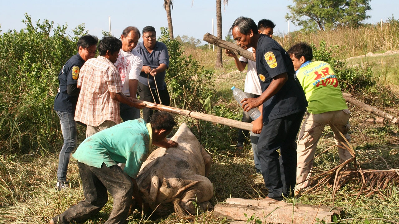 วันที่ 19 ก.พ.เจ้าหน้าที่กู้ภัยมูลนิธิกุศลศรัทธาสุราษฎร์ธานี ได้เข้าช่วยเหลือ วัวของนายขจร กี๋แสง อายุ 53 ปี อยู่บ้านเลขที่ 136/18 ต.มะขามเตี้ย อ.เมือง จ.สุราษฎร์ธานี ซึ่งได้พลัดหลงจากฝูง เข้าไปติดหล่มอยู่ในบ่อโคลน บริเวณพื้นที่ หมู่ 1 ต.บางกุ้ง อ.เมืองสุราษฎร์ธานี โดยเมื่อเจ้าหน้าที่ไปถึง พบว่าวัวทั้ง 2 ตัว จมอยู่ในบ่อโคลนจนไม่สามารถขยับเขยื้อนร่างกายได้ และมีอาการอ่อนแรง จึงได้เร่งช่วยกันใช้ไม้สอดแล้วใช้คนหามขึ้นมาจนปลอดภัย
