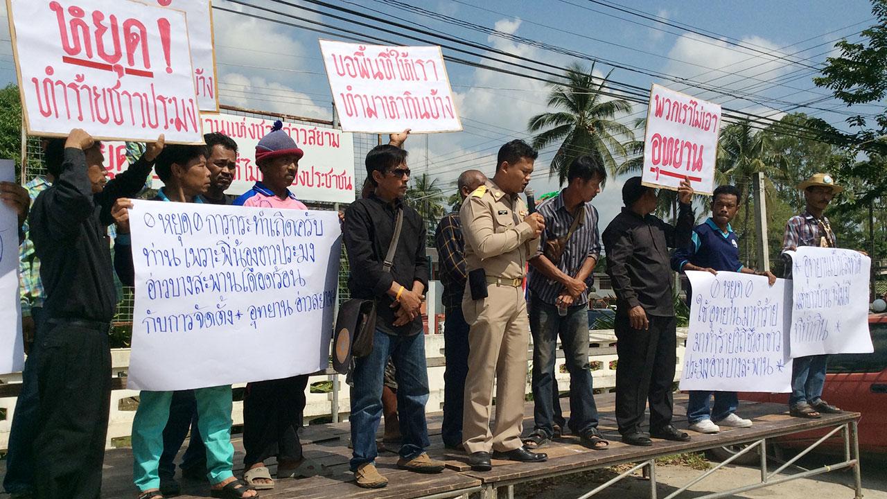 ต่อมาเวลา 10.00 น. วันที่ 20 ก.พ.60 ที่ลานหน้าที่ว่าการอำเภอบางสะพานน้อย จังหวัดประจวบคีรีขันธ์ กลุ่มชาวประมงชายฝั่งในนามกลุ่มชาวเลรักษ์ถิ่น ชาวประมงชายฝั่ง อ.บางสะพานน้อย นำโดย นายดำรงค์ แดงโชติ ประธานกลุ่มชาวเลรักษ์ถิ่น อ.บางสะพานน้อย นายสุรินทร์ วิเศษนาก นายกิตติศักดิ์ ภักดีประชุม ตัวแทนชาวประมงพื้นบ้าน อ.บางสะพานน้อย พร้อมชาวบ้าน ต.ทรายทอง ต.บางสะพาน ต.ปากแพรก ประมาณ 300 คน เปิดเวทีปราศรัยคัดค้านการประกาศแนวเขตอุทยานฯ อ่าวสยาม โดยมีเจ้าหน้าที่ตำรวจ สภ.บางสะพานน้อย ฝ่ายปกครอง เข้าร่วมสังเกตการณ์