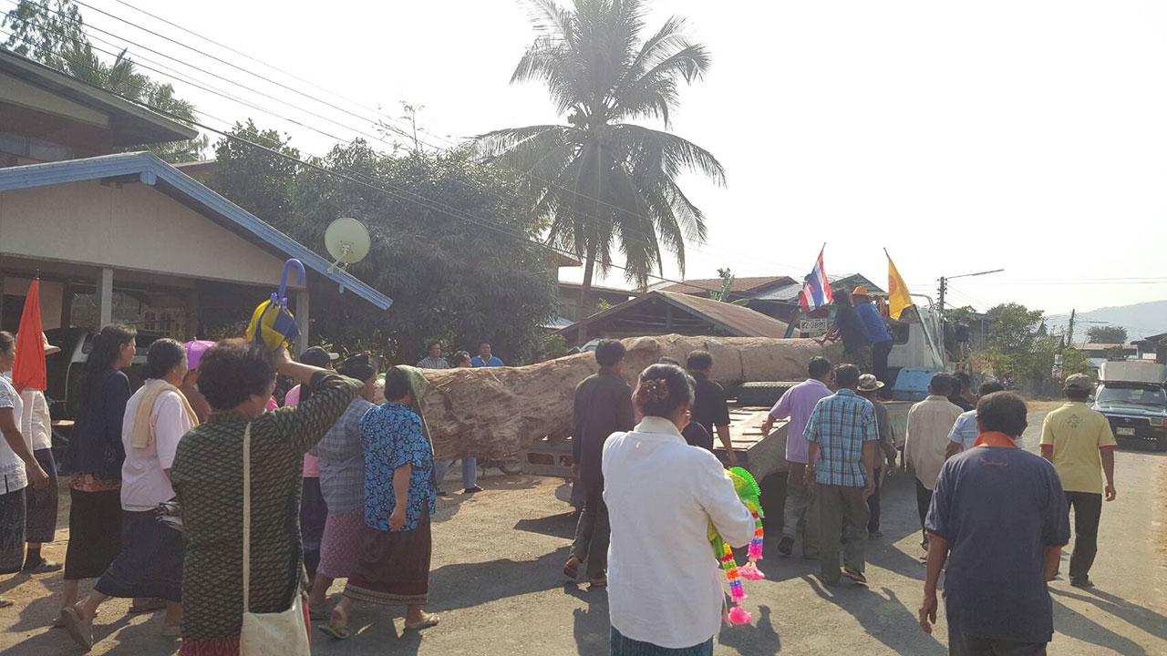 ขณะที่ นายทรงพล มงคล อดีต ส.อบต.โพนงาม เผยว่า ทางหมู่บ้านได้ว่าจ้างรถเทรลเลอร์มาบรรทุกต้นตะเคียนทองยักษ์ โดยได้รับความอนุเคราะห์รถจาก พ.อ.จตุรภัทร วงศ์ศรีเผือก ผู้บังคับหน่วยพัฒนาการเคลื่อนที่ 24 จ.มุกดาหาร ให้กำลังพลมาช่วยยกลำต้นตะเคียนทองขึ้นรถเทรลเลอร์เพื่ออัญเชิญไปเก็บรักษาที่วัด เมื่อนำมาถึงแล้วต้องทำพิธีอัญเชิญลง มีการจุดธูป 3 ดอก ถวายพวงมาลัย ถวายผ้าสไบ เครื่องนุ่มห่ม ขันธ์ 5 หมากคนแก่ 1 ชุด บุหรี่ 2 มวน น้ำเปล่า 1 ขวด ถึงจะนำลงจากรถมาประทับที่วัดได้.