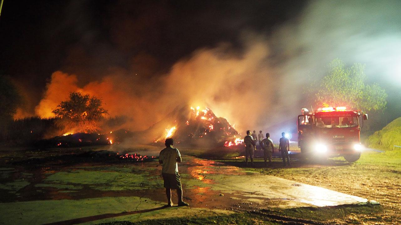 นายประยงค์ เล่าว่า ได้ว่าจ้างคนงานมาตัดอ้อย 12 ไร่ ในบริเวณใกล้ๆกัน แต่ยังไม่แล้วเสร็จ จะต้องมาตัดอีกในวันรุ่งขึ้น ซึ่งตนได้สั่งคนงานไว้แล้วว่าอย่าเพิ่งจุดไฟเผาอ้อย ก่อนจะไปรับลูกสาว และซื้อของใช้จำเป็นที่ตลาดด่านขุนทด และกลับบ้านตอนค่ำพบไฟกำลังลุกไหม้ไร่อ้อยอย่างรุนแรง คาดว่าคนงานคงใจร้อนรีบเผาไร่อ้อยไว้ล่วงหน้า โดยไม่มีใครควบคุม ประกอบกับมีลมกรรโชกแรง ทำให้ไฟลุกลามไหม้กองซังข้าวโพด ซึ่งเตรียมจะอัดแท่งนำไปขาย จะได้เงินประมาณ 2.5 แสนบาท แต่ก็วอดไปในพริบตา และหากควบคุมเพลิงไม่ทัน อาจลุกลามไปถึงกองฟางอีกจำนวนมาก รวมถึงบ้านพัก อย่างไรก็ตามจะจัดเวรยามคอยระวังไม่ให้ไฟปะทุขึ้นมาอีกตลอดทั้งคืน.