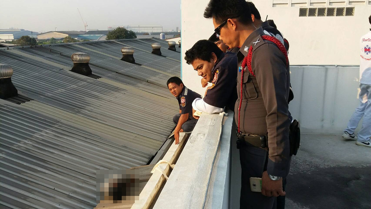 จากการสอบถาม นางทองปน ประณีตพลกรัง อายุ 51 ปี แม่บ้านของบริษัท กล่าวว่าช่วงเช้าตนมาทำความสะอาดที่ห้องครัวชั้น 3 ระหว่างนั้นได้เปิดประตูหน้าต่างออกไปพบมีเท้าโผล่ออกมาบริเวณหลังคา จึงขึ้นไปดูพบว่ามีคนเสียชีวิต จึงแจ้งเจ้าหน้าที่ทราบ