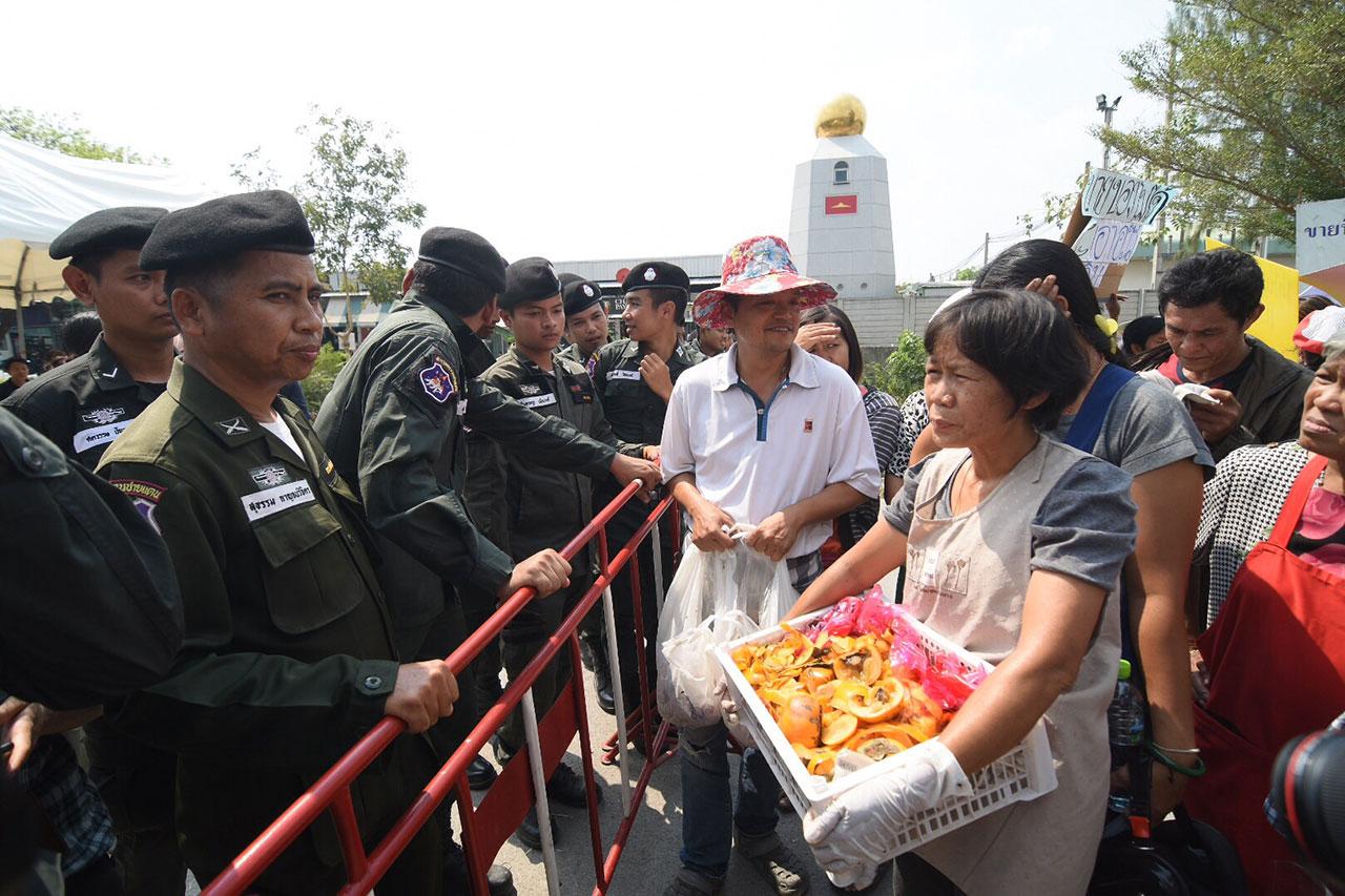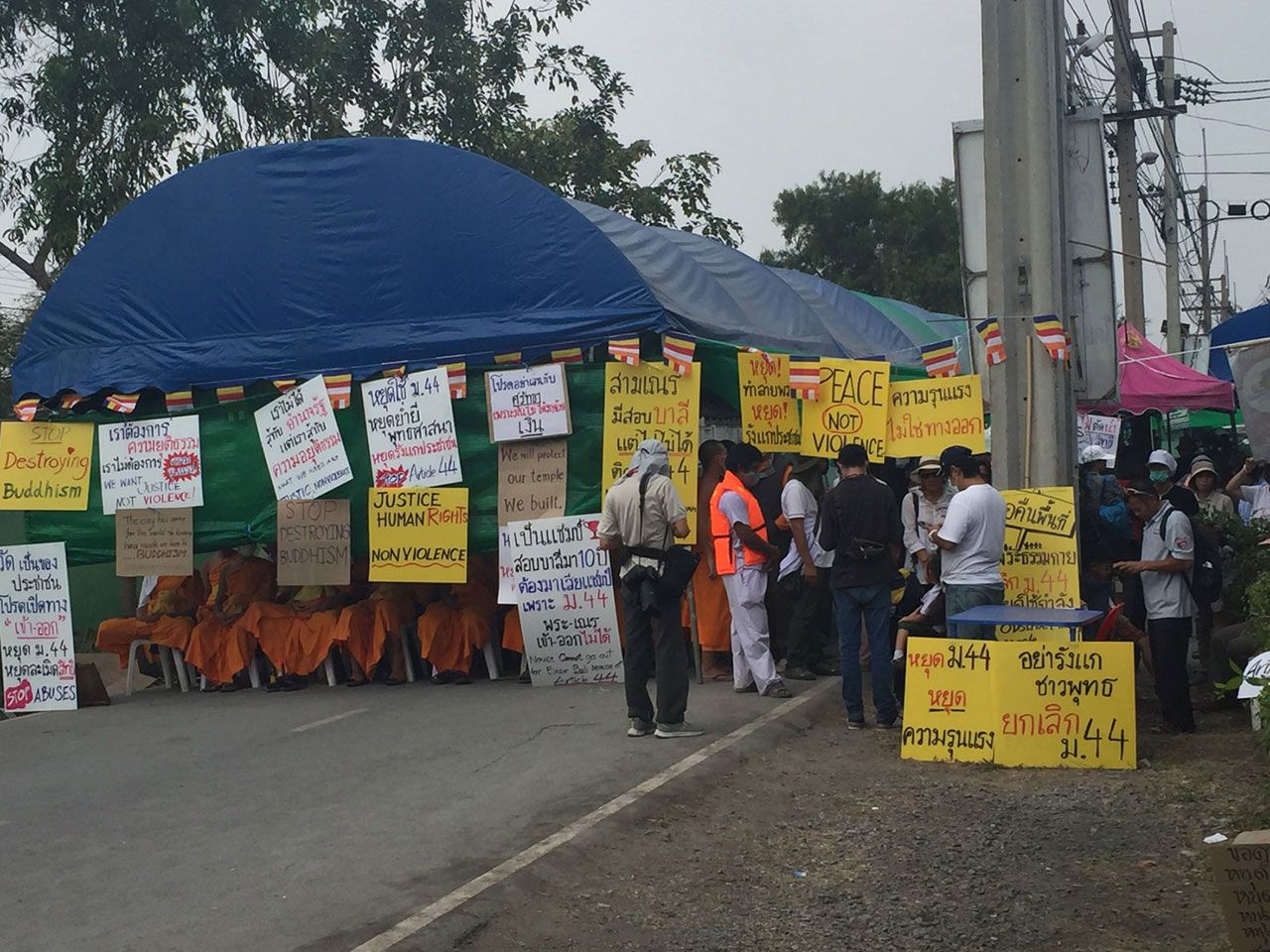 เมื่อเวลา 14.00 น. วันที่ 21 ก.พ.2560 ที่ประตู 5 มีบรรดาพ่อค้าแม่ค้าที่มีร้านค้าอยู่ในเขตวัดพระธรรมกาย รวมตัวกันนำผลไม้และเนื้อสัตว์ที่มีสภาพเน่าเสียมาแสดงต่อเจ้าหน้าที่ตำรวจที่ตั้งแถวอยู่บริเวณถนนเลียบคลองแอน เพื่อร้องขอความเป็นธรรม เนื่องจากได้รับความเดือดร้อน เพราะเจ้าหน้าที่ไม่ยินยอมให้คนจากด้านนอกเข้าไปข้างใน ให้แต่เพียงคนข้างในออกมาเพียงอย่างเดียวเท่านั้น